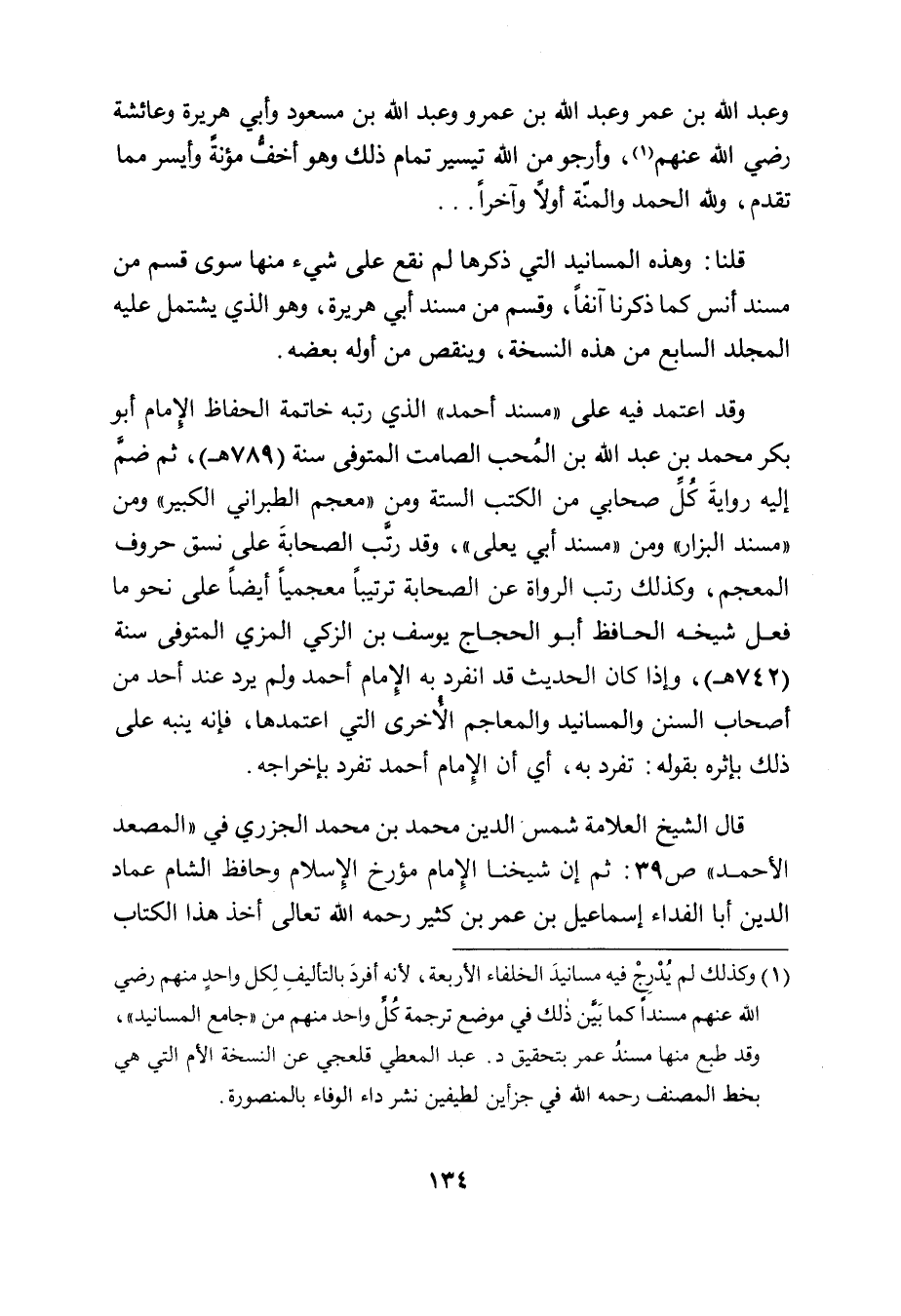 (١) وكذلك لم يُدْرِجْ فيه مسانيدَ الخلفاء الأربعة، لأنه أفردَ بالتأليفِ لِكل واحدٍ منهم رضي الله عنهم مسنداً كما بَيَّن ذلك في موضع ترجمة كُلِّ واحد منهم من " جامع المسانيد "، وقد طبع منها مسندُ عمر بتحقيق د. عبد المعطي قلعجي عن النسخة الأم التي هي بخط المصنف رحمه الله في جزأين لطيفين نشر دار الوفاء بالمنصورة.
