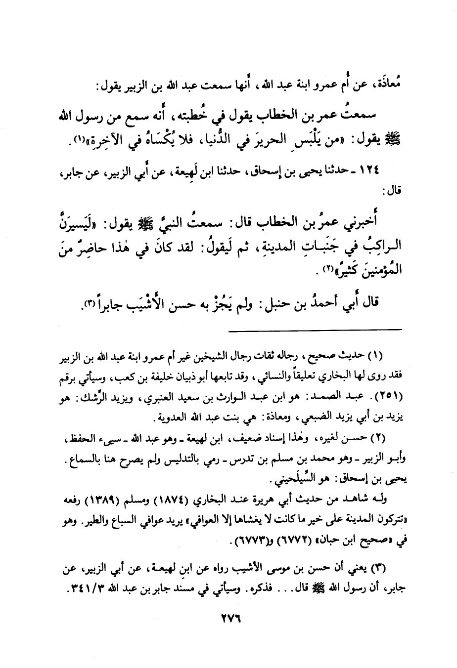 (٣) يعني أن حسن بن موسى الأشيب رواه عن ابنِ لهيعة، عن أبي الزبير، عن جابر، أن رسول الله صَلَّى اللهُ عَلَيْهِ وَسَلَّمَ قال ... فذكره. وسيأتي في مسند جابر بن عبد الله ٣ / ٣٤١.