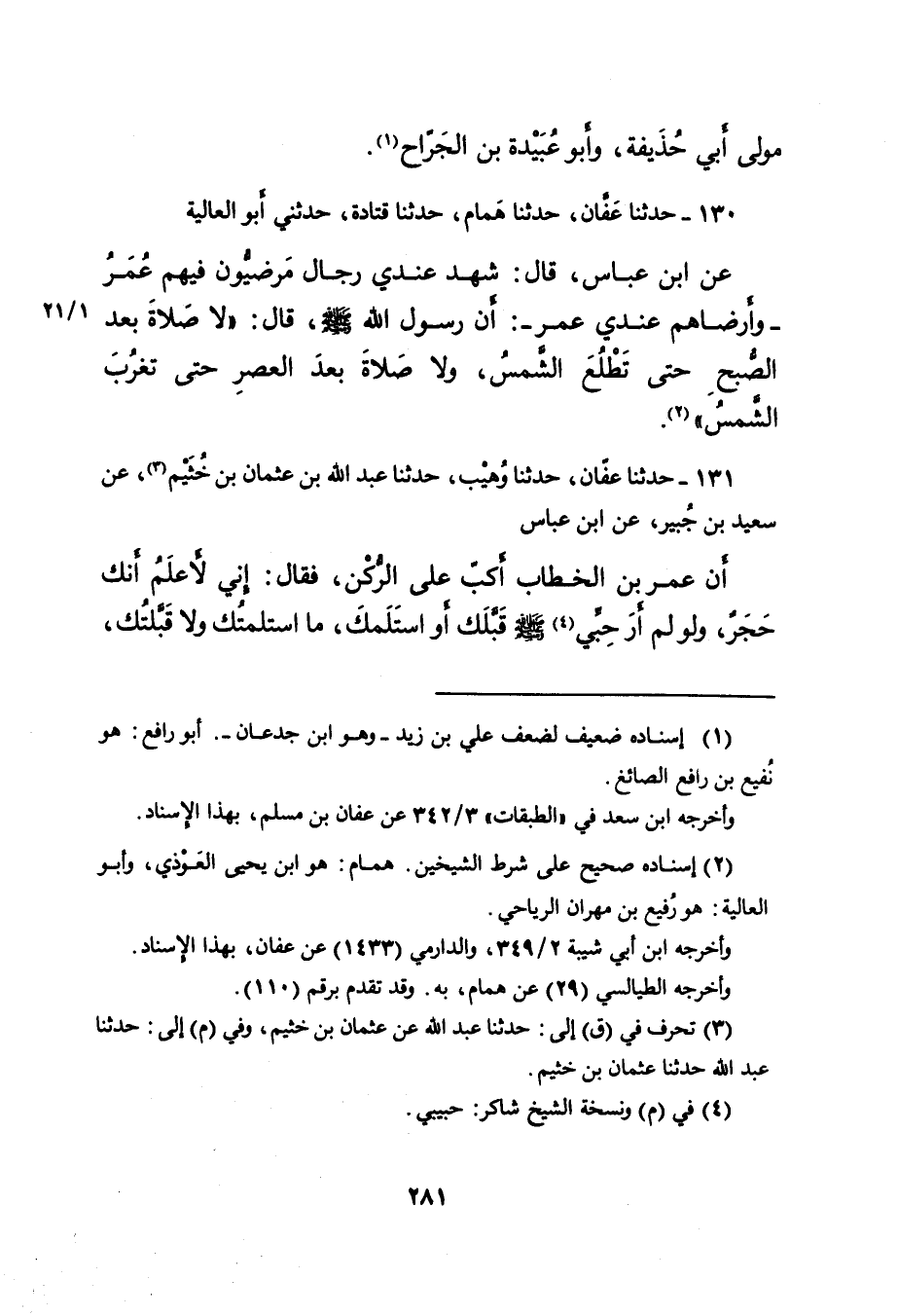 ١٣١ - حَدَّثَنَا عَفَّانُ، حَدَّثَنَا وُهَيْبٌ، حَدَّثَنَا عَبْدُ اللهِ بْنُ عُثْمَانَ بْنِ خُثَيْمٍ (٣) ، عَنْ سَعِيدِ بْنِ جُبَيْرٍ، عَنِ ابْنِ عَبَّاسٍ