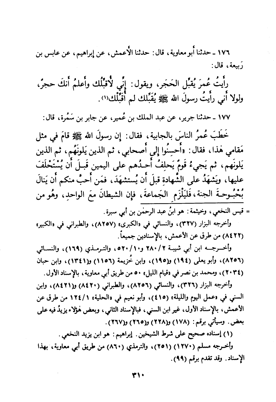 ١٧٦ - حَدَّثَنَا أَبُو مُعَاوِيَةَ، قَالَ: حَدَّثَنَا الْأَعْمَشُ، عَنْ إِبْرَاهِيمَ، عَنْ عَابِسِ بْنِ رَبِيعَةَ، قَالَ: