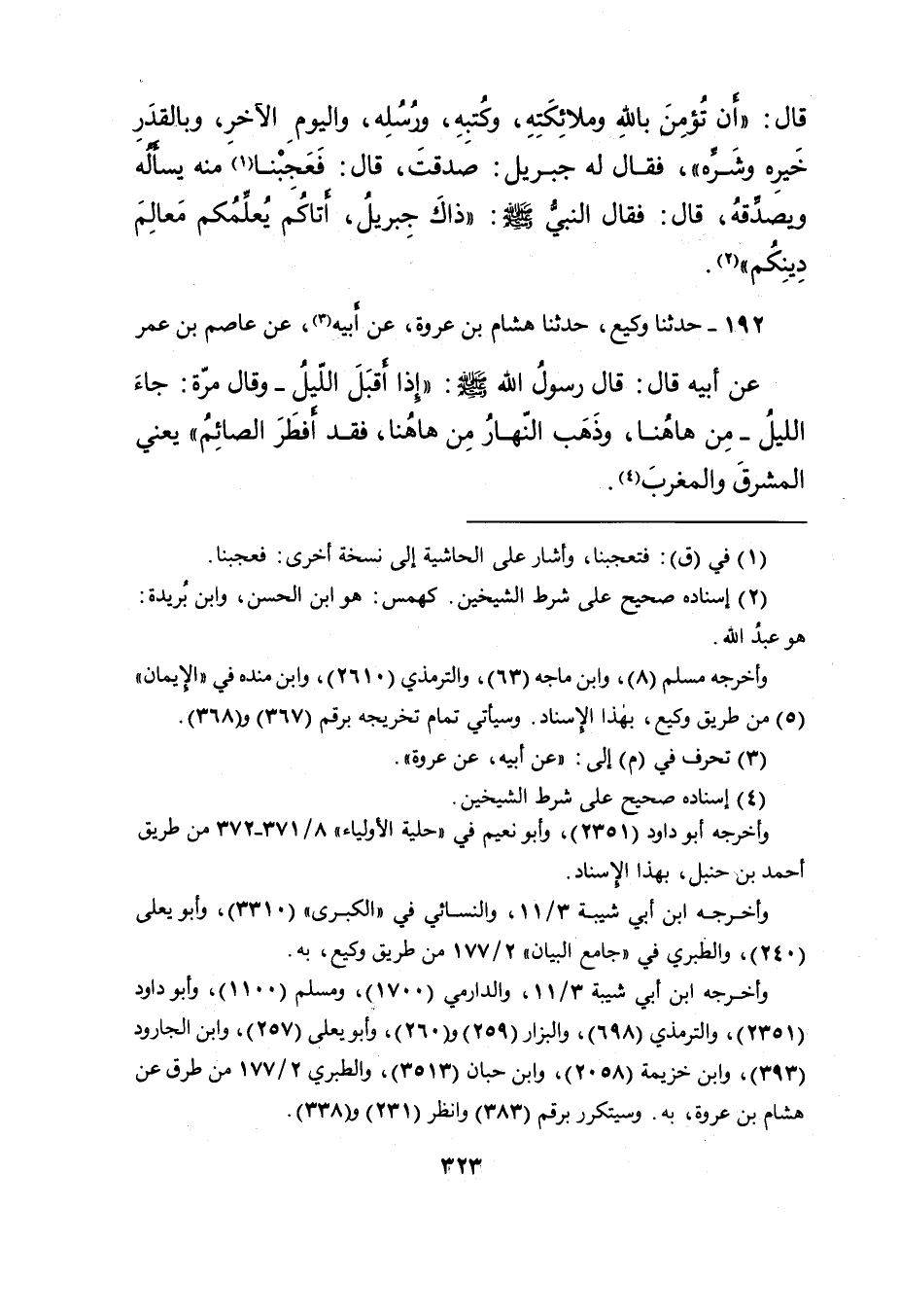 وأخرجه مسلم (٨) ، وابن ماجه (٦٣) ، والترمذي (٢٦١٠) ، وابن منده في " الإيمان " (٥) من طريق وكيع، بهذا الإسناد. وسيأتي تمام تخريجه برقم (٣٦٧) و (٣٦٨) .