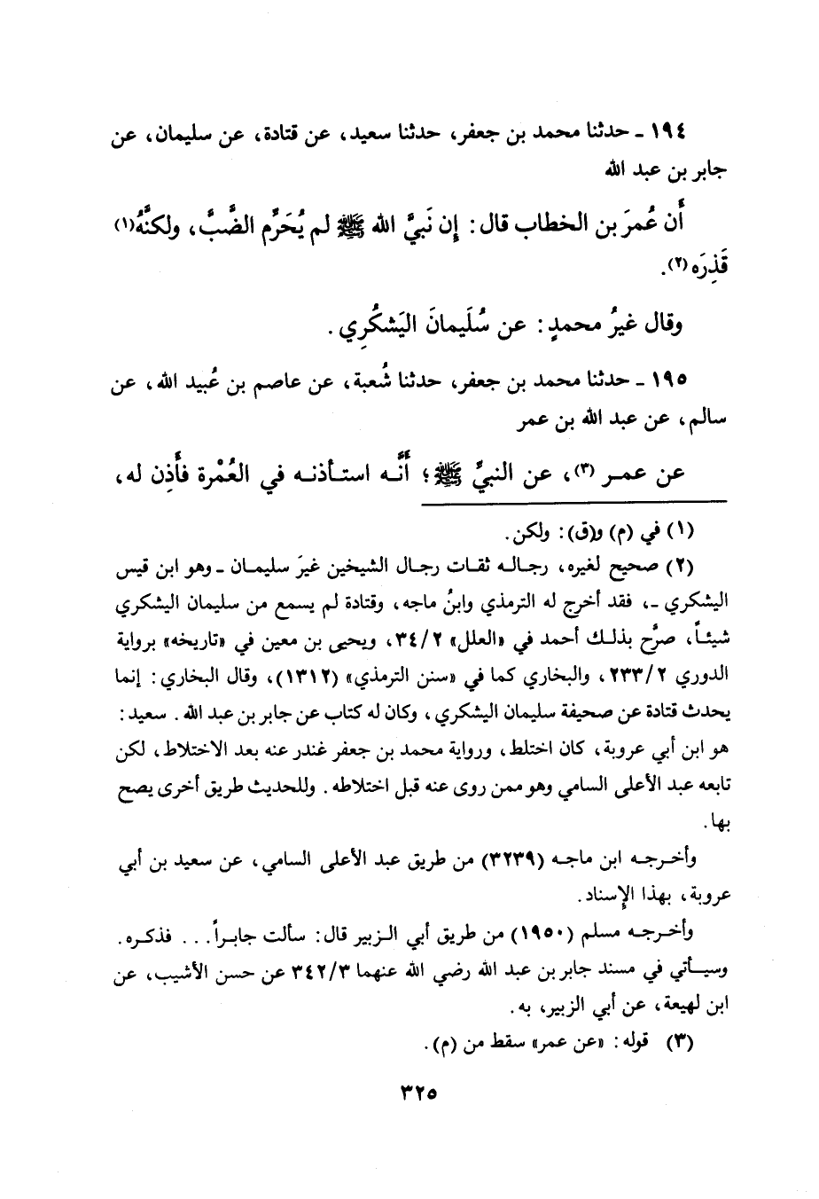 أَنَّ عُمَرَ بْنَ الْخَطَّابِ قَالَ: إِنَّ نَبِيَّ اللهِ صَلَّى اللهُ عَلَيْهِ وَسَلَّمَ لَمْ يُحَرِّمِ الضَّبَّ، وَلَكِنَّه (١) قَذِرَهُ (٢) .