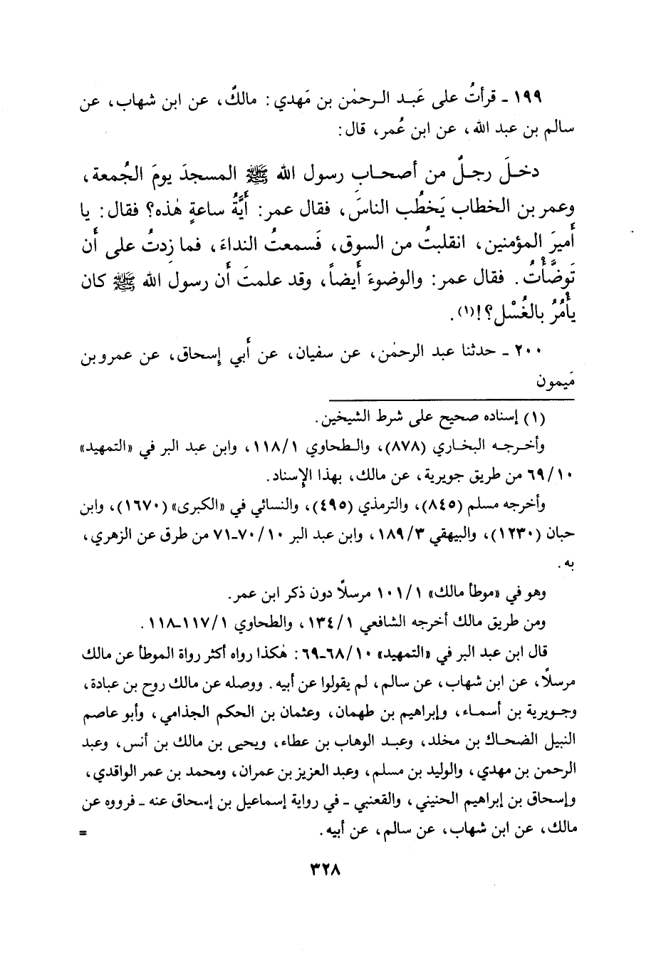 ١٩٩ - قَرَأْتُ عَلَى عَبْدِ الرَّحْمَنِ بْنِ مَهْدِيٍّ: مَالِكٌ، عَنِ ابْنِ شِهَابٍ، عَنْ سَالِمِ بْنِ عَبْدِ اللهِ، عَنِ ابْنِ عُمَرَ، قَالَ: