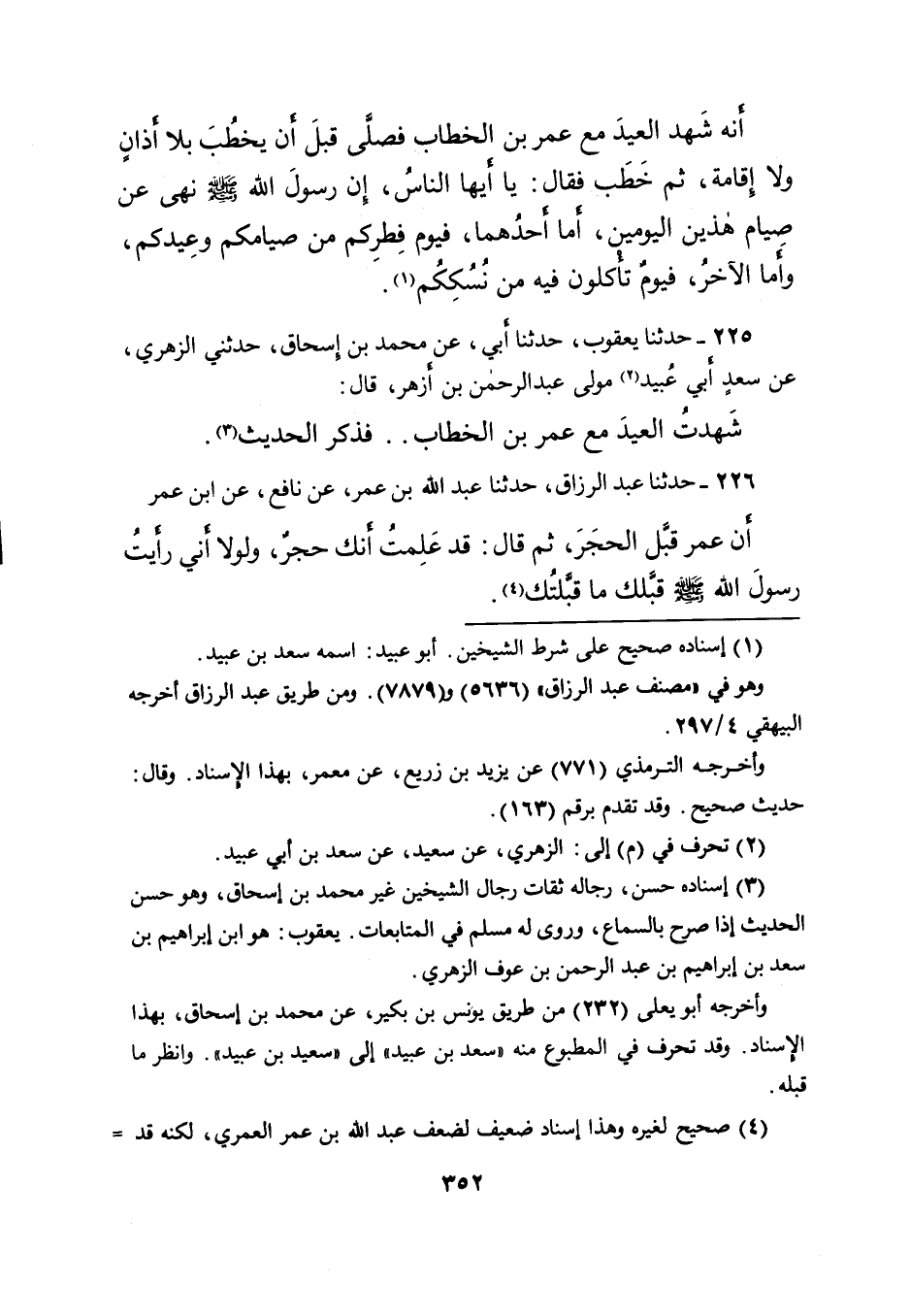 ٢٢٥ - حَدَّثَنَا يَعْقُوبُ، حَدَّثَنَا أَبِي، عَنْ مُحَمَّدِ بْنِ إِسْحَاقَ، حَدَّثَنِي الزُّهْرِيُّ، عَنْ سَعْدٍ أَبِي عُبَيْدٍ (٢) مَوْلَى عَبْدِ الرَّحْمَنِ بْنِ أَزْهَرَ، قَالَ: