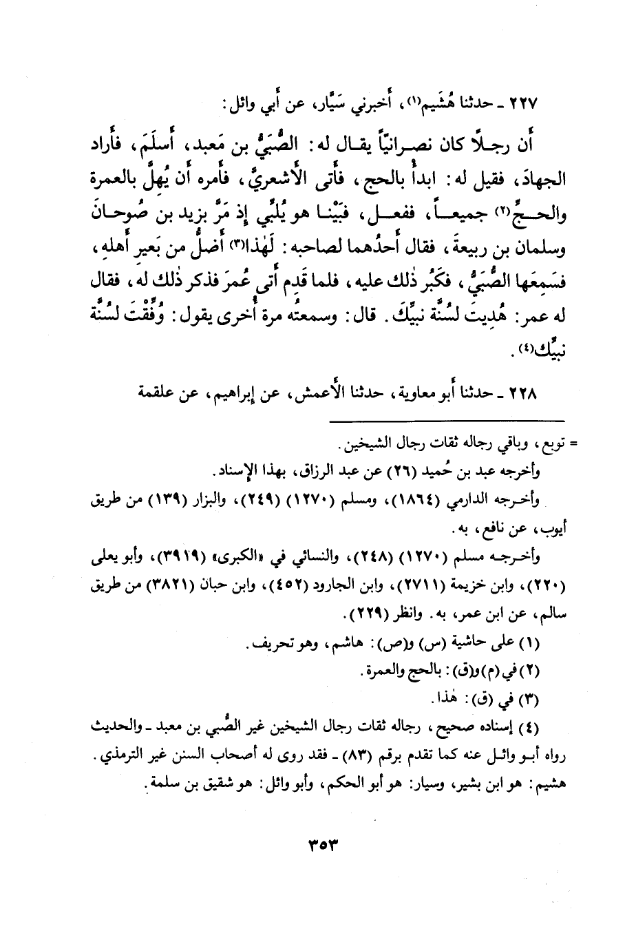 ٢٢٧ - حَدَّثَنَا هُشَيْمٌ (١) ، أَخْبَرَنِي سَيَّارٌ، عَنْ أَبِي وَائِلٍ: