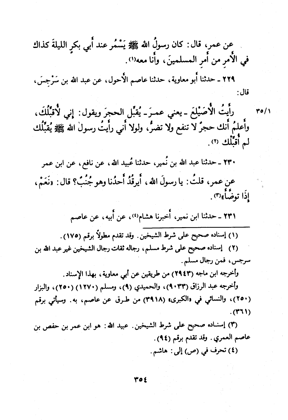٢٣١ - حَدَّثَنَا ابْنُ نُمَيْرٍ، أَخْبَرَنَا هِشَامٌ (٤) ، عَنْ أَبِيهِ، عَنْ عَاصِمٍ
