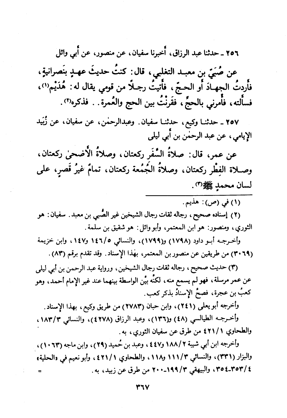 ٢٥٧ - حَدَّثَنَا وَكِيعٌ، حَدَّثَنَا سُفْيَانُ، وَعَبْدُ الرَّحْمَنِ، عَنْ سُفْيَانَ، عَنْ زُبَيْدٍ الْإِيَامِيِّ، عَنْ عَبْدِ الرَّحْمَنِ بْنِ أَبِي لَيْلَى