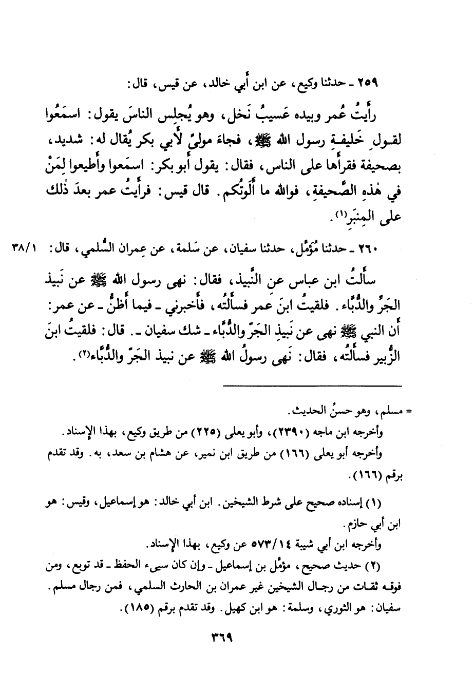 ٢٥٩ - حَدَّثَنَا وَكِيعٌ، عَنِ ابْنِ أَبِي خَالِدٍ، عَنْ قَيْسٍ، قَالَ: