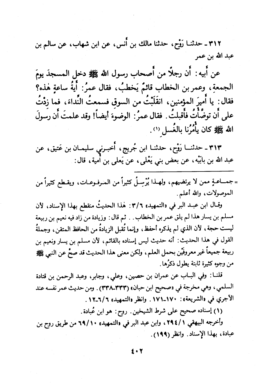 ٣١٢ - حَدَّثَنَا رَوْحٌ، حَدَّثَنَا مَالِكُ بْنُ أَنَسٍ، عَنِ ابْنِ شِهَابٍ، عَنْ سَالِمِ بْنِ عَبْدِ اللهِ بْنِ عُمَرَ