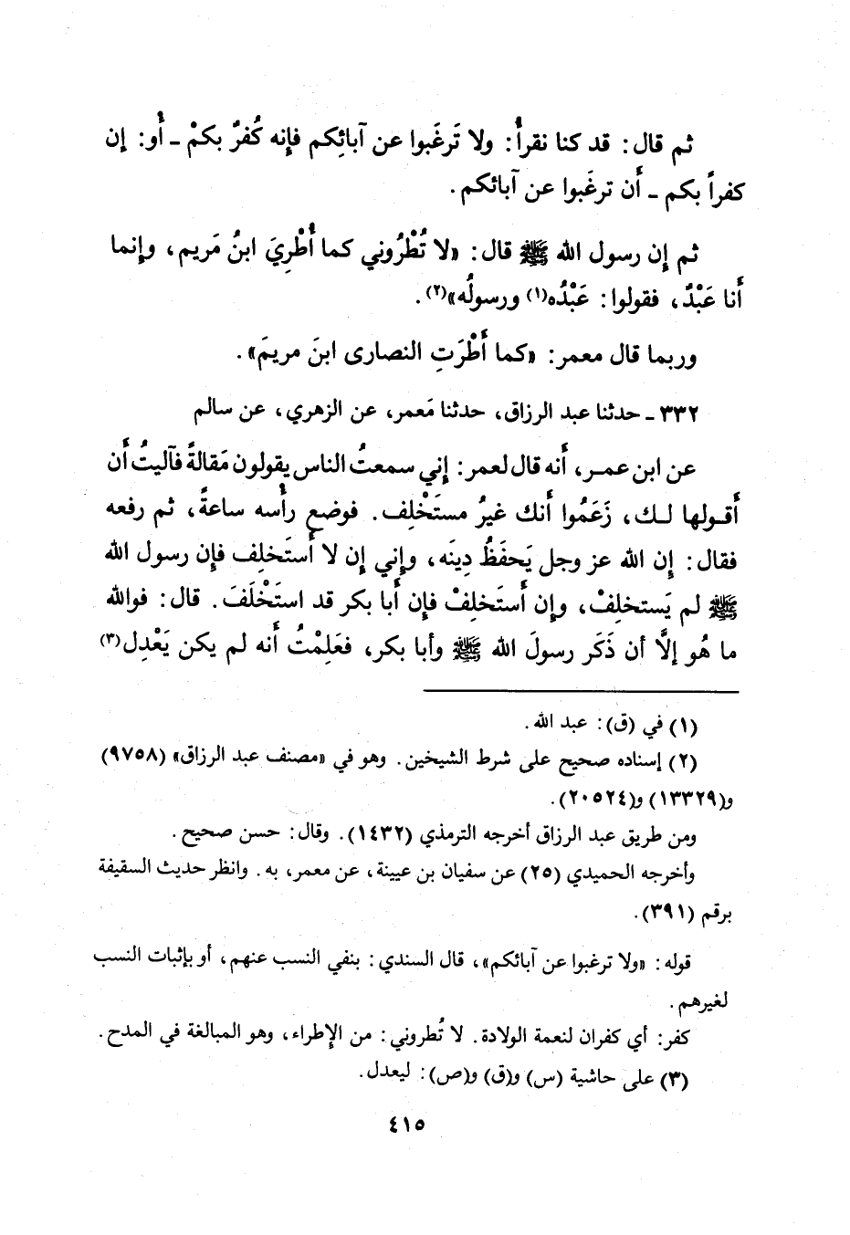 وَرُبَّمَا قَالَ مَعْمَرٌ: " كَمَا أَطْرَتِ النَّصَارَى ابْنَ مَرْيَمَ ".