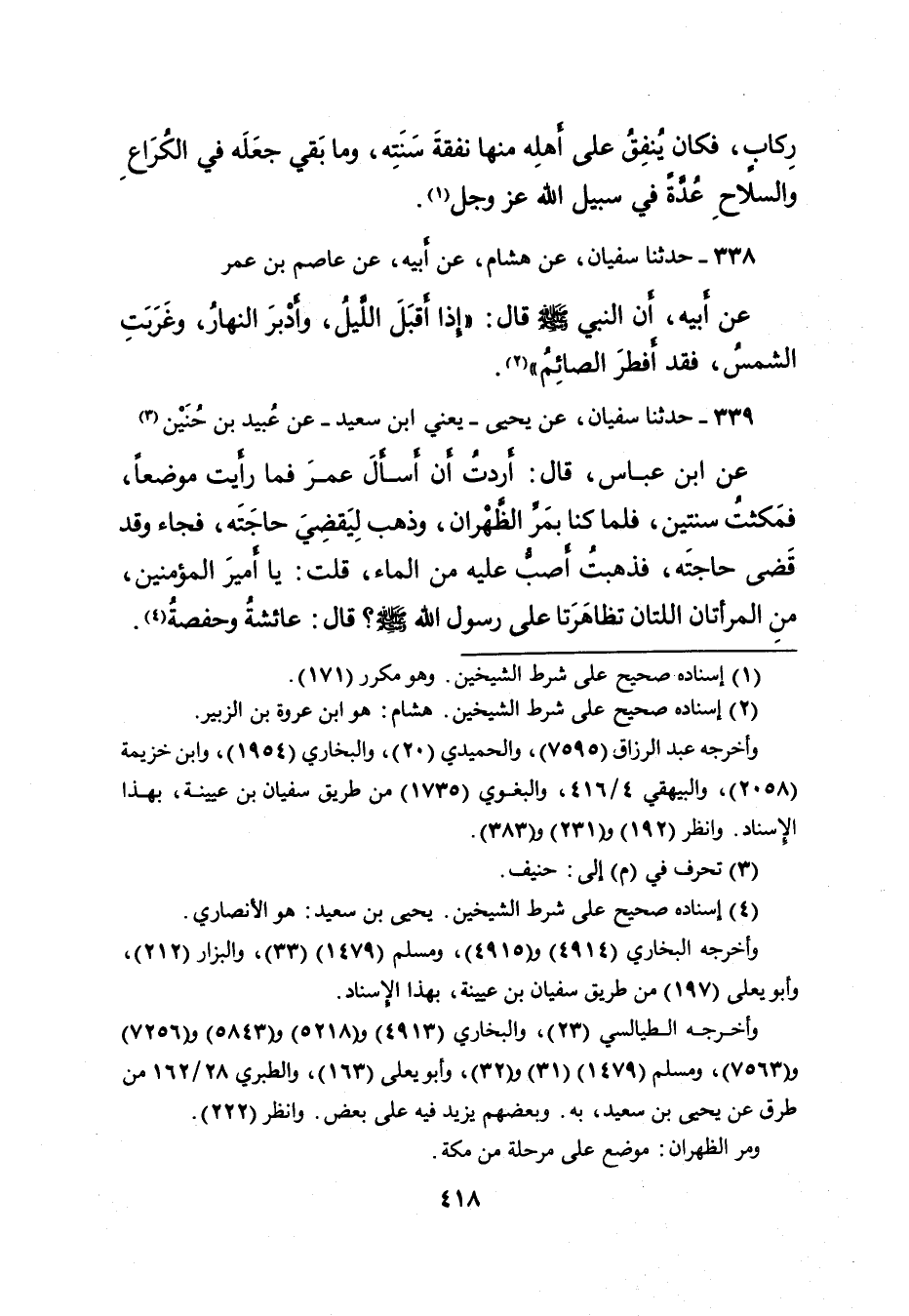 ٣٣٨ - حَدَّثَنَا سُفْيَانُ، عَنْ هِشَامٍ، عَنْ أَبِيهِ، عَنْ عَاصِمِ بْنِ عُمَرَ