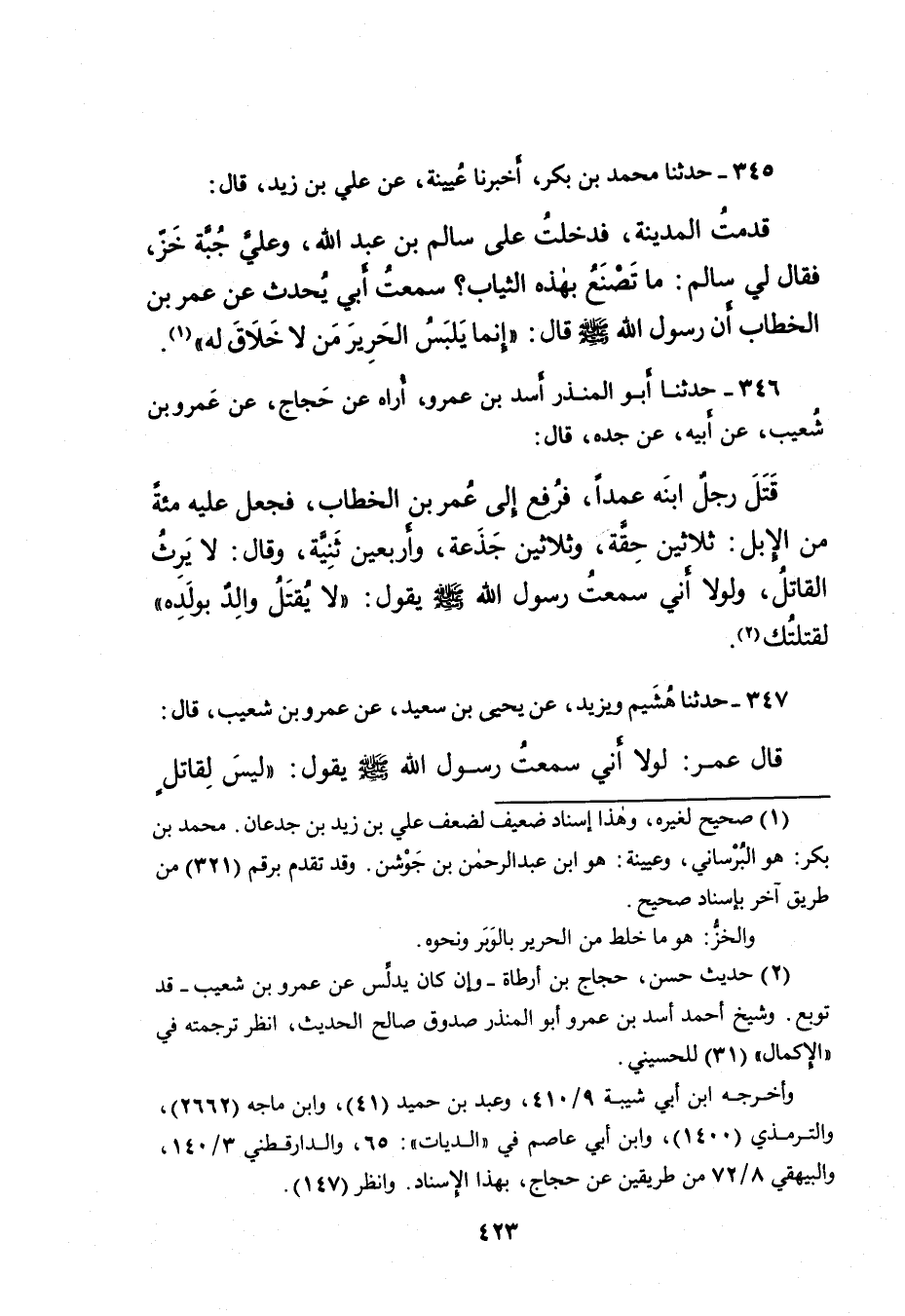 ٣٤٦ - حَدَّثَنَا أَبُو الْمُنْذِرِ أَسَدٌ بْنُ عُمَرَو، أُرَاهُ عَنِ حَجَّاجٍ، عَنْ عَمْرِو بْنِ شُعَيْبٍ، عَنْ أَبِيهِ، عَنْ جَدِّهِ، قَالَ:
