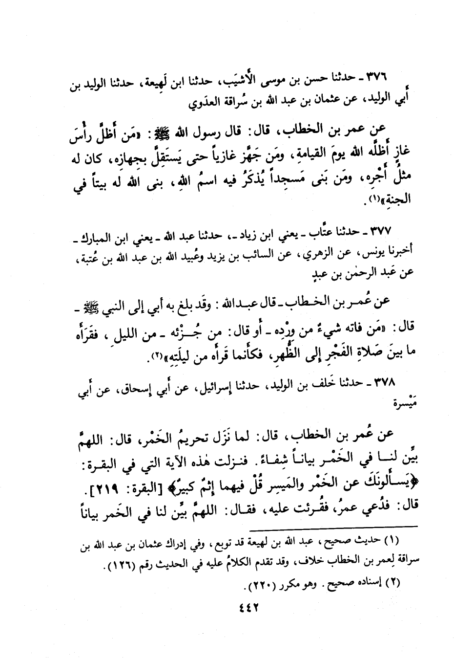 ٣٧٦ - حَدَّثَنَا حَسَنُ بْنُ مُوسَى الْأَشْيَبُ، حَدَّثَنَا ابْنُ لَهِيعَةَ، حَدَّثَنَا الْوَلِيدُ بْنُ أَبِي الْوَلِيدِ، عَنْ عُثْمَانَ بْنِ عَبْدِ اللهِ بْنِ سُرَاقَةَ الْعَدَوِيِّ