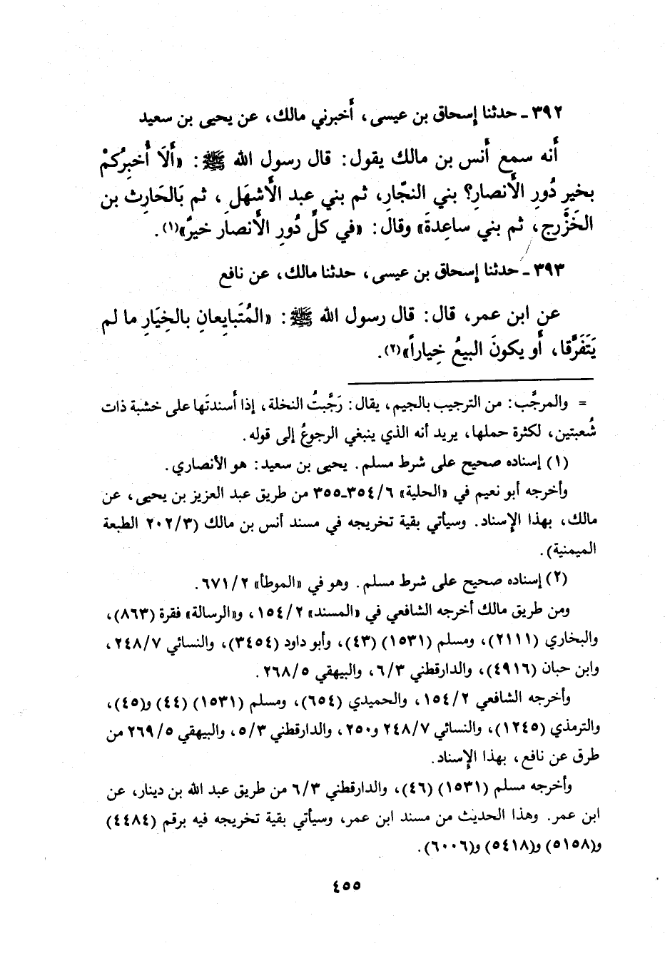 ٣٩٢ - حَدَّثَنَا إِسْحَاقُ بْنُ عِيسَى، أَخْبَرَنِي مَالِكٌ، عَنْ يَحْيَى بْنِ سَعِيدٍ