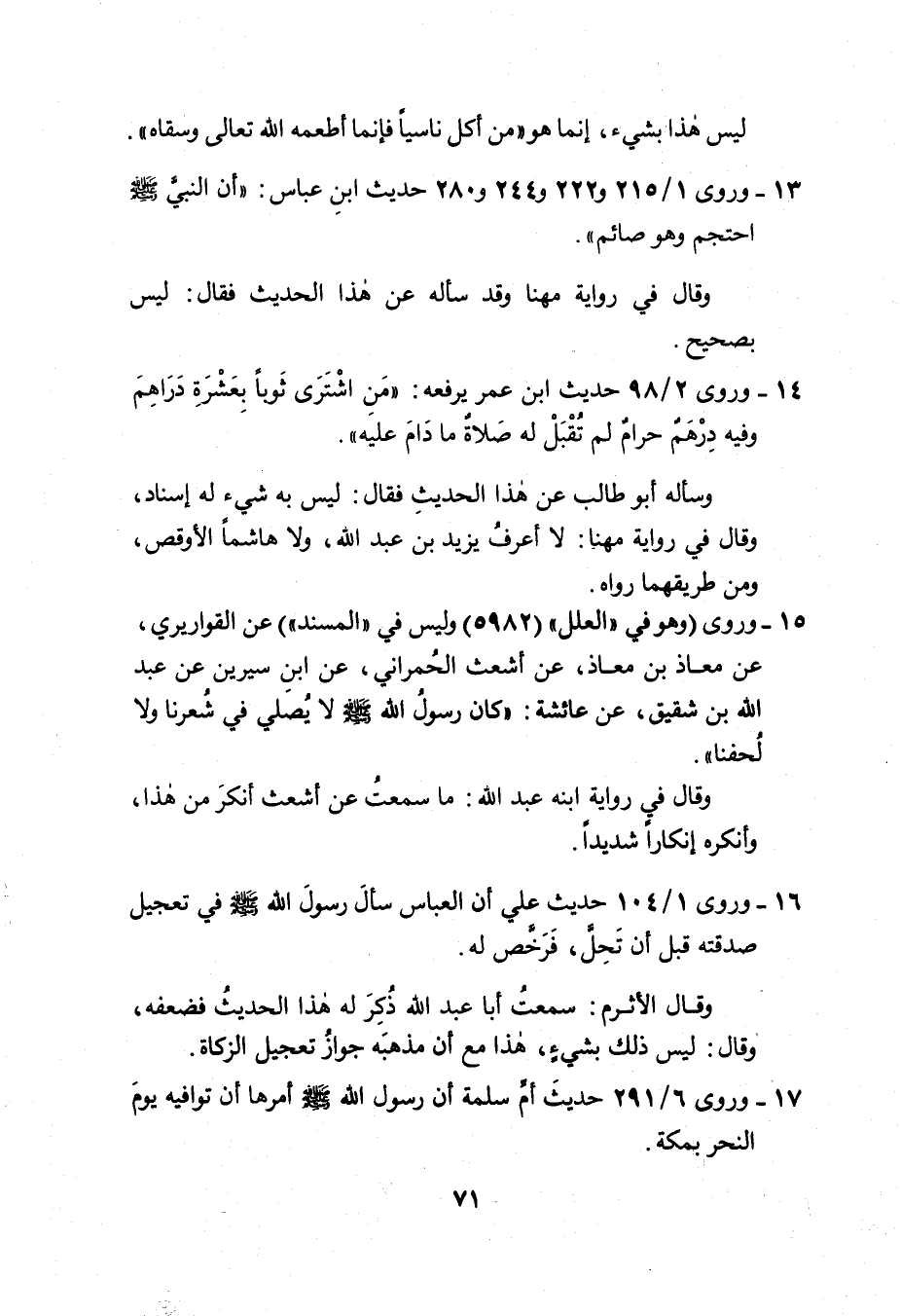 ١٦- وروى ١ / ١٠٤ حديث علي أن العباس سألَ رسولَ الله صَلَّى اللَّهُ عَلَيْهِ وَسَلَّمَ في تعجيل صدقته قبل أن تَحِلَّ، فَرَخَّص له.
