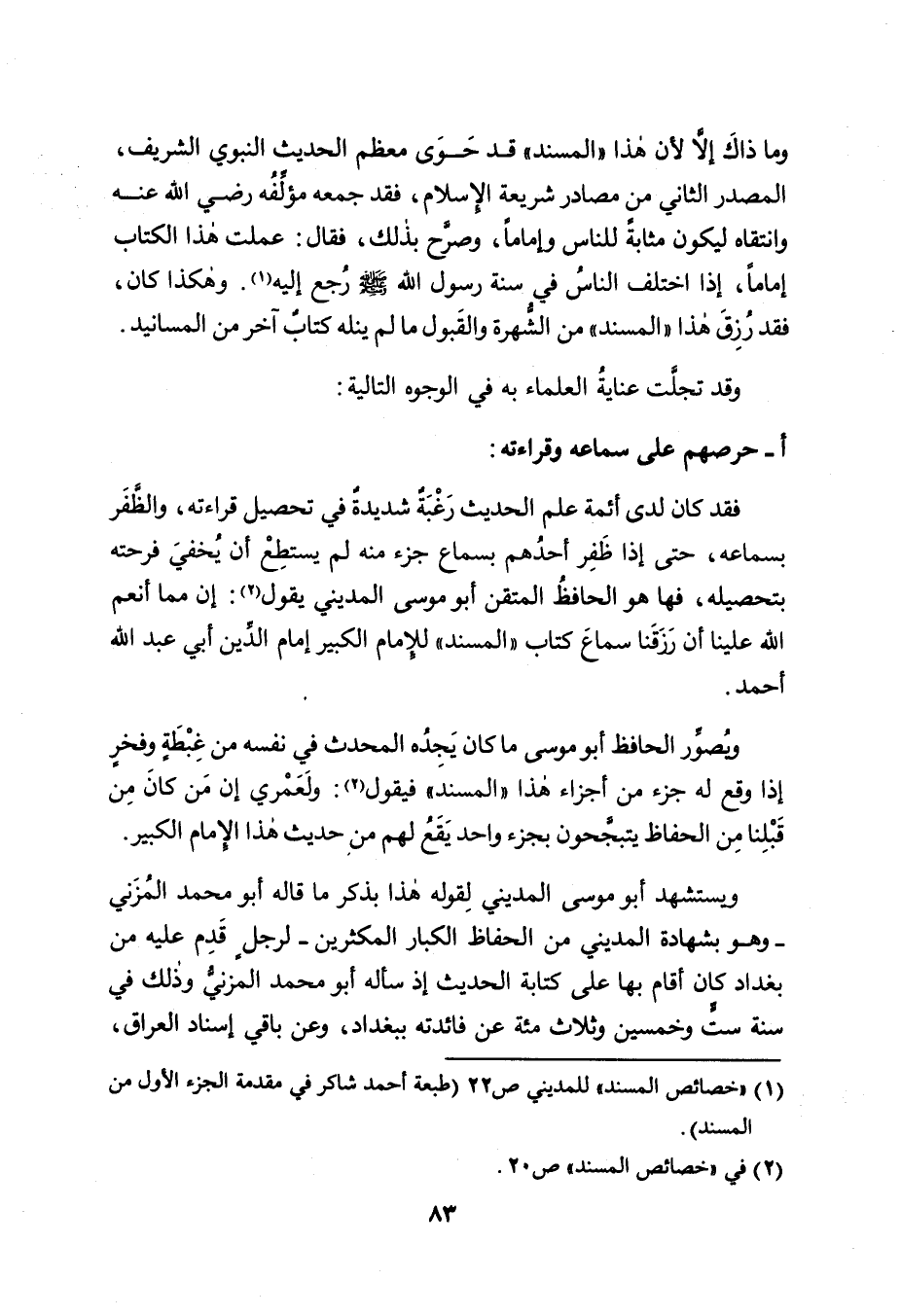 (١) " خصائص المسند " للمديني ص ٢٢ (طبعة أحمد شاكر في مقدمة الجزء الأول من المسند) .