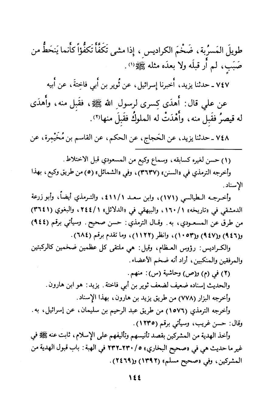 ٧٤٧ - حَدَّثَنَا يَزِيدُ، أَخْبَرَنَا إِسْرَائِيلُ، عَنْ ثُوَيْرِ بْنِ أَبِي فَاخِتَةَ، عَنْ أَبِيهِ، عَنْ عَلِيٍّ، قَالَ: " أَهْدَى كِسْرَى لِرَسُولِ اللهِ صَلَّى اللهُ عَلَيْهِ وَسَلَّمَ، فَقَبِلَ مِنْهُ، وَأَهْدَى لَهُ قَيْصَرُ فَقَبِلَ مِنْهُ، وَأَهْدَتْ لَهُ الْمُلُوكُ فَقَبِلَ مِنْهَا " (٢)