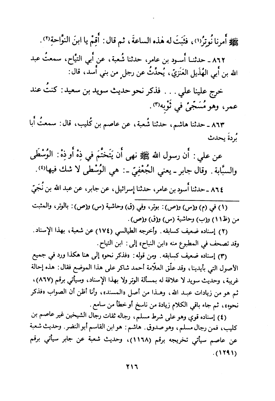 (٤) إسناده قوي وهو على شرط مسلم، رجاله ثقات رجال الشيخين غبر عاصم بن كليب، فمن رجال مسلم، وهو صدوق. هاشم: هو ابن القاسم أبو النضر. وحديث شعبة عن عاصم سياتي تخريجه برقم (١١٦٨) ، وحديث شعبة عن جابر سياتي برقم (١٢٩١) .