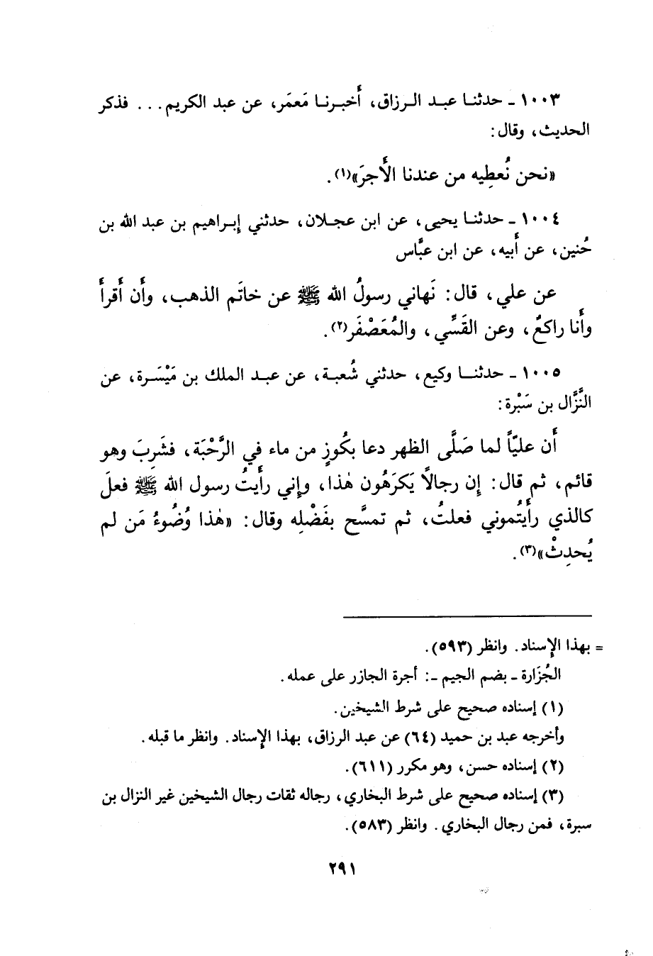 ١٠٠٣ - حَدَّثَنَا عَبْدُ الرَّزَّاقِ، أَخْبَرَنَا مَعْمَرٌ، عَنْ عَبْدِ الْكَرِيمِ، فَذَكَرَ الْحَدِيثَ وَقَالَ: " نَحْنُ نُعْطِيهِ مِنْ عِنْدِنَا الْأَجْرَ " (١)