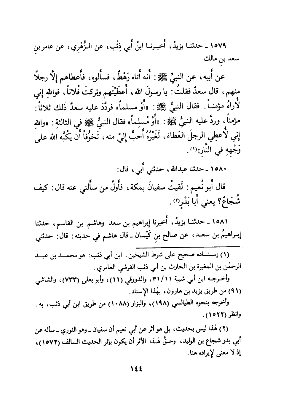 ١٥٨١ - حَدَّثَنَا يَزِيدُ، أَخْبَرَنَا إِبْرَاهِيمُ بْنُ سَعْدٍ، وَهَاشِمُ بْنُ الْقَاسِمِ، حَدَّثَنَا إِبْرَاهِيمُ بْنُ سَعْدٍ، عَنْ صَالِحِ بْنِ كَيْسَانَ، قَالَ هَاشِمٌ فِي حَدِيثِهِ: قَالَ: حَدَّثَنِي