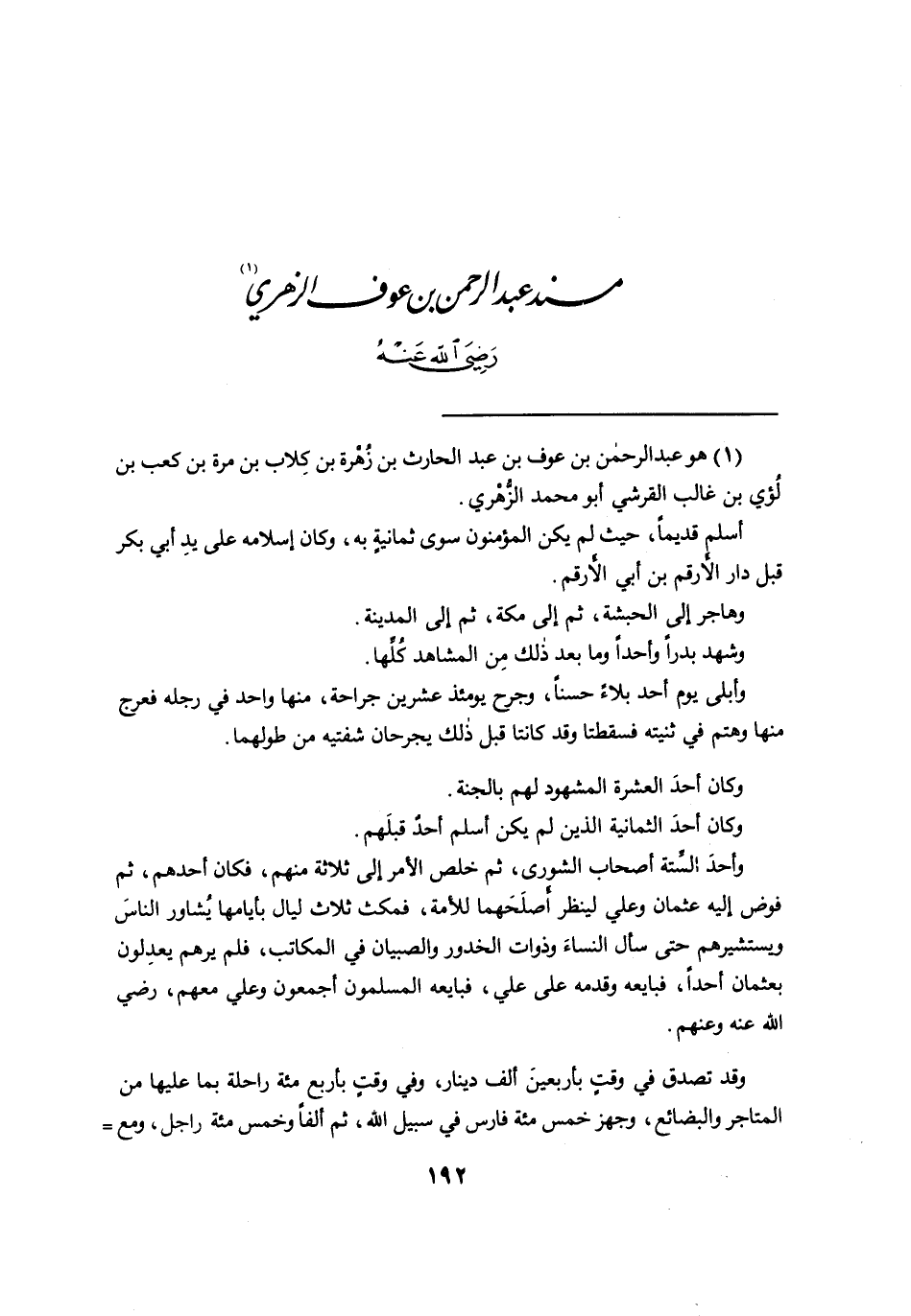 مُسْنَدُ عَبْدِ الرَّحْمَنِ بْنِ عَوْفٍ الزُّهْرِيِّ (١) رَضِيَ اللهُ عَنْهُ