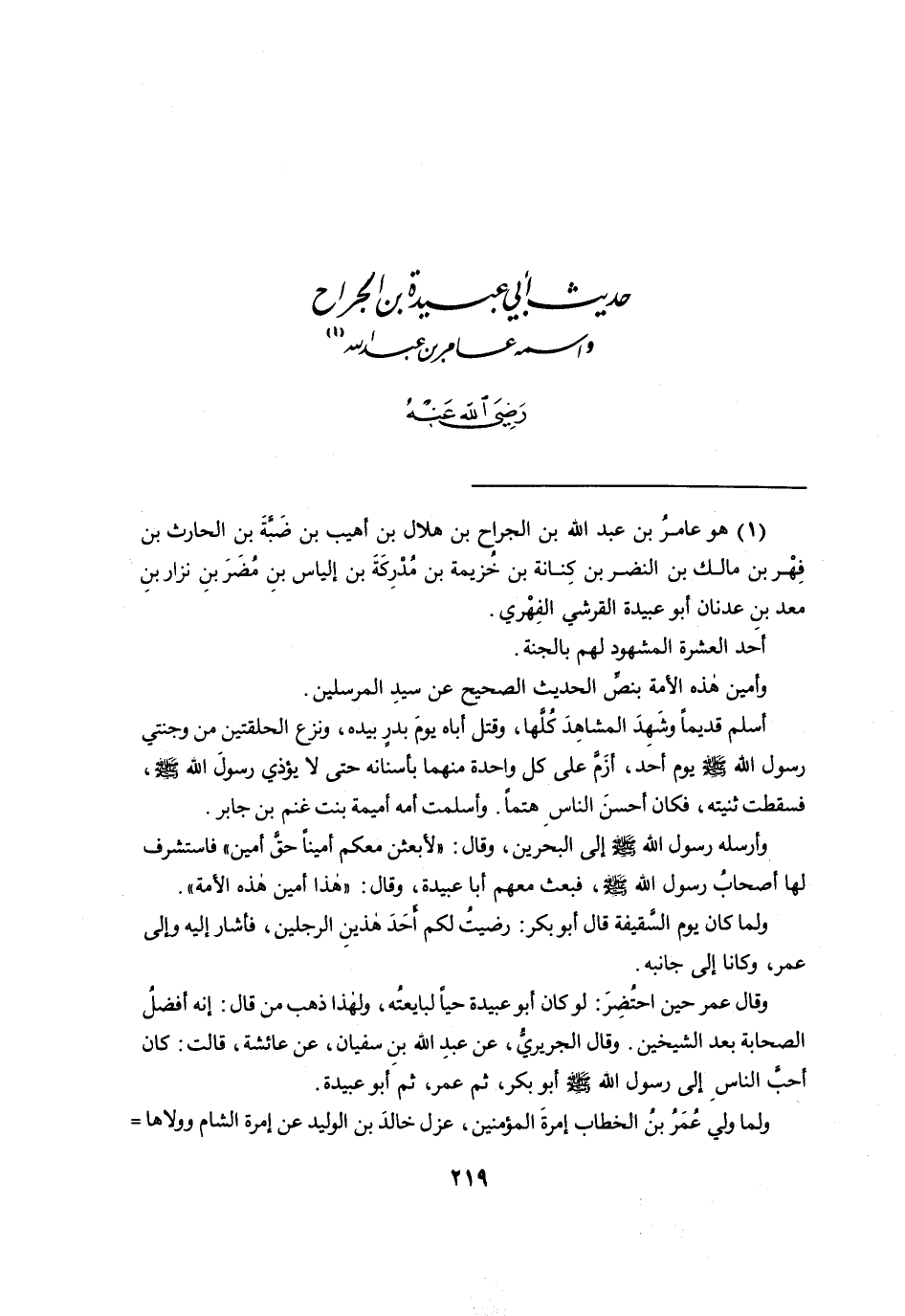 حَدِيثُ أَبِي عُبَيْدَةَ بْنِ الْجَرَّاحِ وَاسْمُهُ عَامِرُ بْنُ عَبْدِ اللهِ (١) رَضِيَ اللهُ عَنْهُ