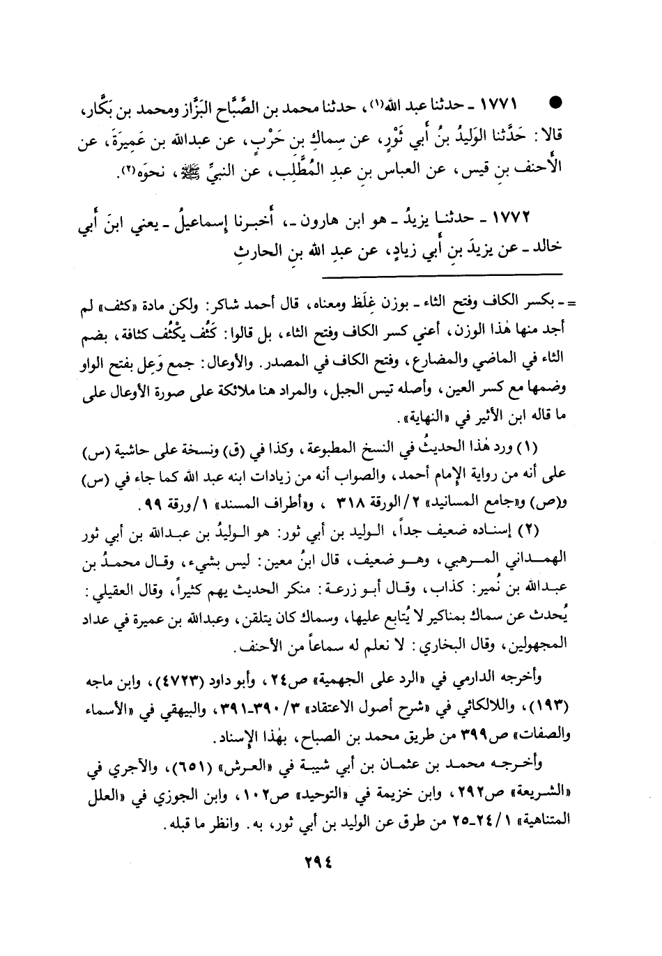 • ١٧٧١ -حَدَّثَنَا عَبْدُ اللهِ (١) : حَدَّثَنَا مُحَمَّدُ بْنُ الصَّبَّاحِ الْبَزَّارُ، وَمُحَمَّدُ بْنُ بَكَّارٍ، قَالا: حَدَّثَنَا الْوَلِيدُ بْنُ أَبِي ثَوْرٍ، عَنْ سِمَاكِ بْنِ حَرْبٍ، عَنْ عَبْدِ اللهِ بْنِ عَمِيرَةَ، عَنِ الْأَحْنَفِ بْنِ قَيْسٍ، عَنِ الْعَبَّاسِ بْنِ عَبْدِ الْمُطَّلِبِ، عَنِ النَّبِيِّ صَلَّى اللهُ عَلَيْهِ وَسَلَّمَ نَحْوَهُ (٢)