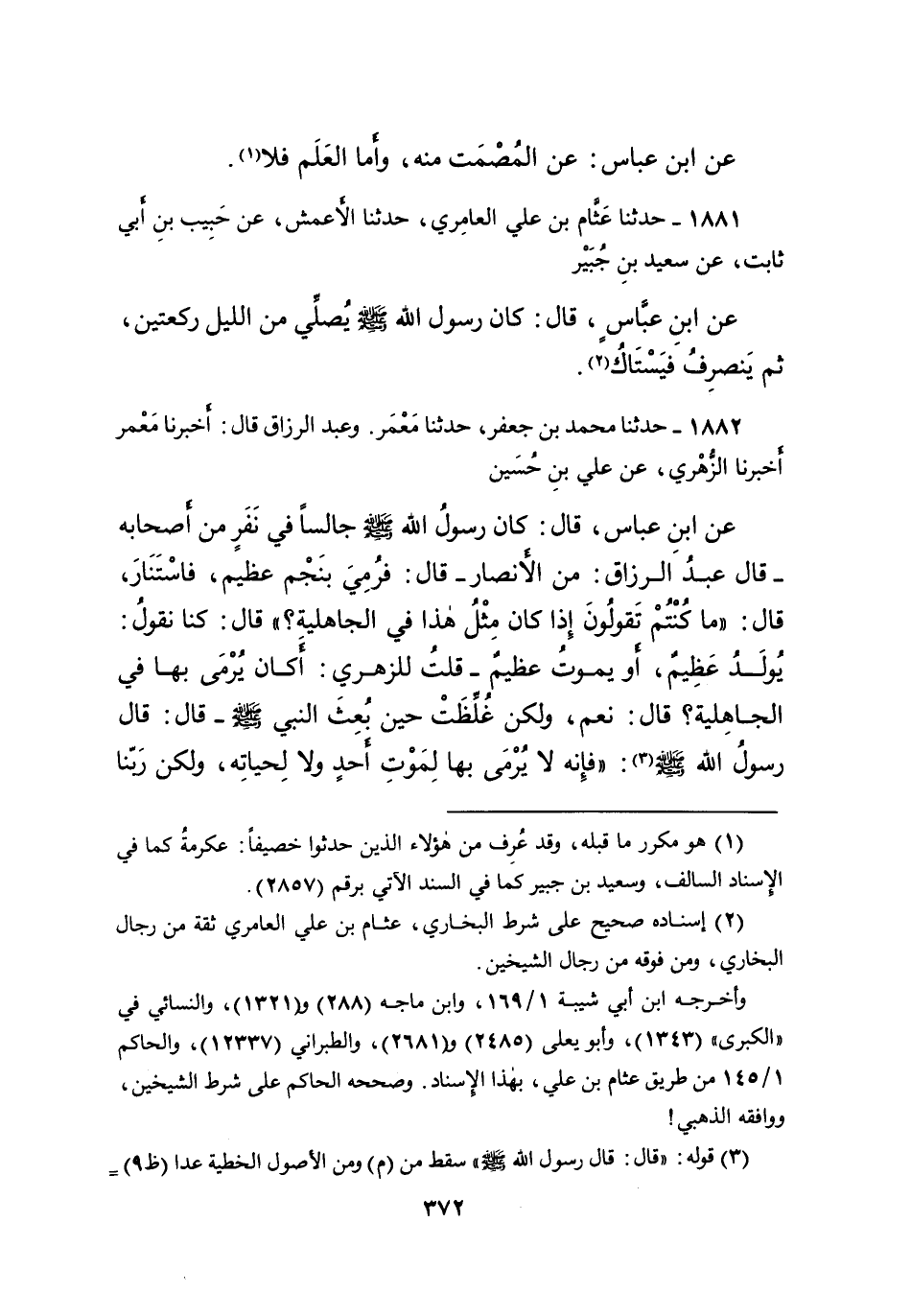 ١٨٨١ - حَدَّثَنَا عَثَّامُ بْنُ عَلِيٍّ الْعَامِرِيُّ، حَدَّثَنَا الْأَعْمَشُ، عَنْ حَبِيبِ بْنِ أَبِي ثَابِتٍ، عَنْ سَعِيدِ بْنِ جُبَيْرٍ، عَنِ ابْنِ عَبَّاسٍ، قَالَ: " كَانَ رَسُولُ اللهِ صَلَّى اللهُ عَلَيْهِ وَسَلَّمَ يُصَلِّي مِنَ اللَّيْلِ رَكْعَتَيْنِ، ثُمَّ يَنْصَرِفُ فَيَسْتَاكُ " (٢)