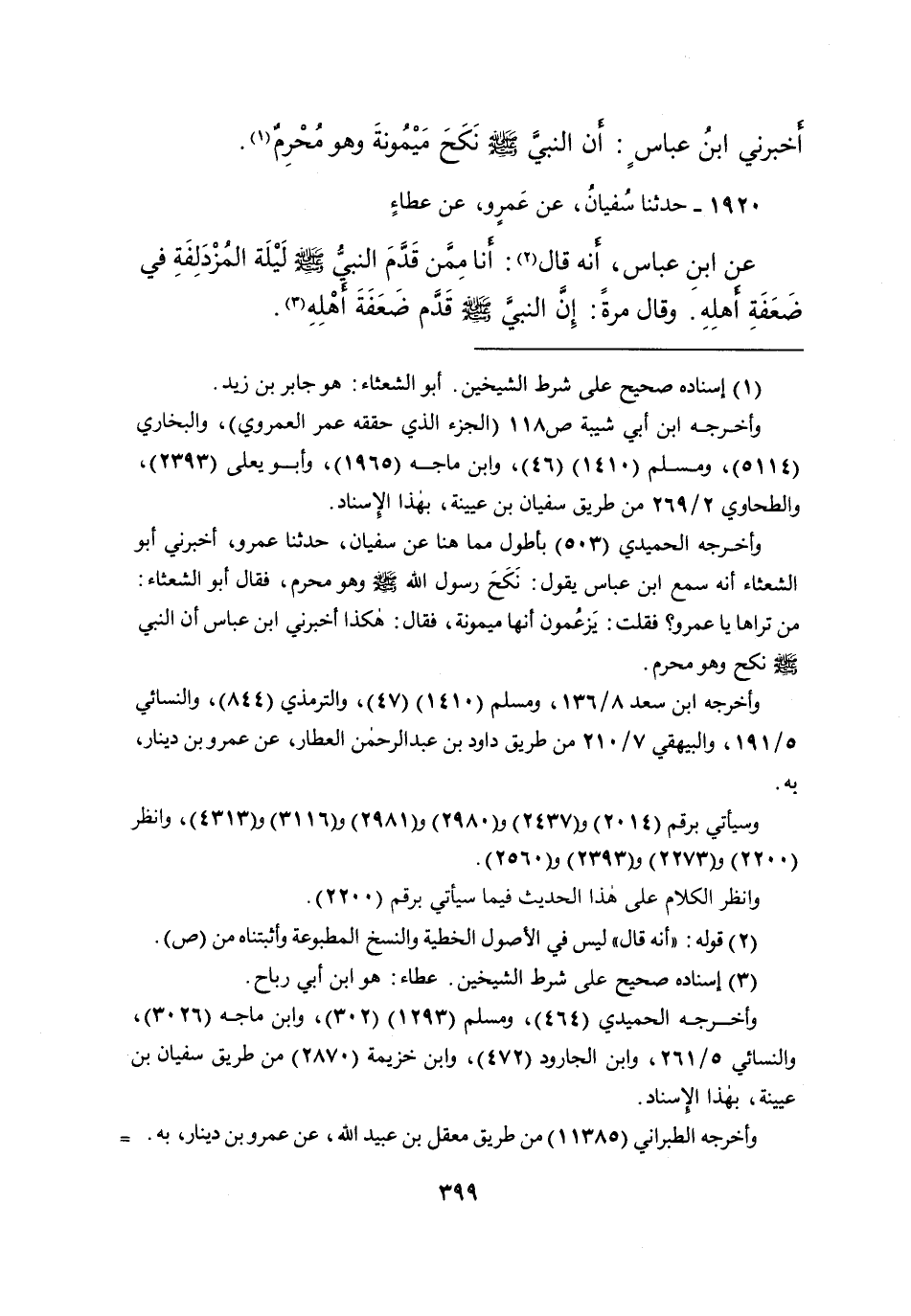 وأخرجه الحميدي (٥٠٣) بأطول مما هنا عن سفيان، حدثنا عمرو، أخبرني أبو الشعثاء أنه سمع ابن عباس يقول: نَكَحَ رسول الله صَلَّى اللهُ عَلَيْهِ وَسَلَّمَه وهو محرم، فقال أبو الشعثاء: من تراها يا عمرو؟ فقلت: يَزعُمون أنها ميمونة، فقال: هكذا أخبرني ابن عباس أن النبي صَلَّى اللهُ عَلَيْهِ وَسَلَّمَيِم نكح وهو محرم.