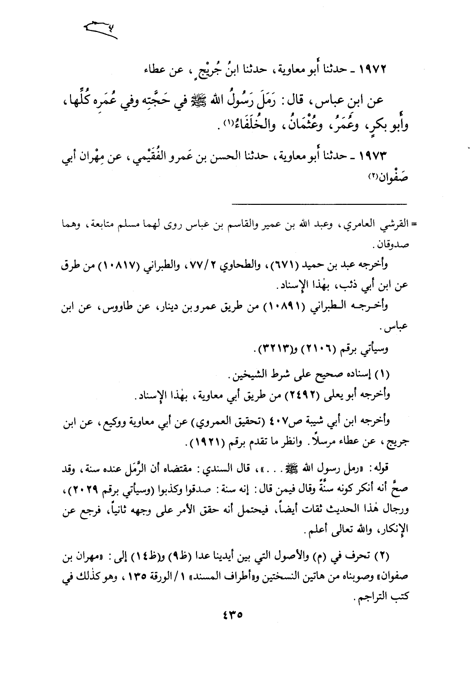 ١٩٧٢ - حَدَّثَنَا أَبُو مُعَاوِيَةَ، حَدَّثَنَا ابْنُ جُرَيْجٍ، عَنْ عَطَاءٍ، عَنِ ابْنِ عَبَّاسٍ، قَالَ: " رَمَلَ رَسُولُ اللهِ صَلَّى اللهُ عَلَيْهِ وَسَلَّمَ فِي حَجَّتِهِ، وَفِي عُمَرِهِ كُلِّهَا وَأَبُو بَكْرٍ، وَعُمَرُ، وَعُثْمَانُ وَالْخُلَفَاءُ " (١)
