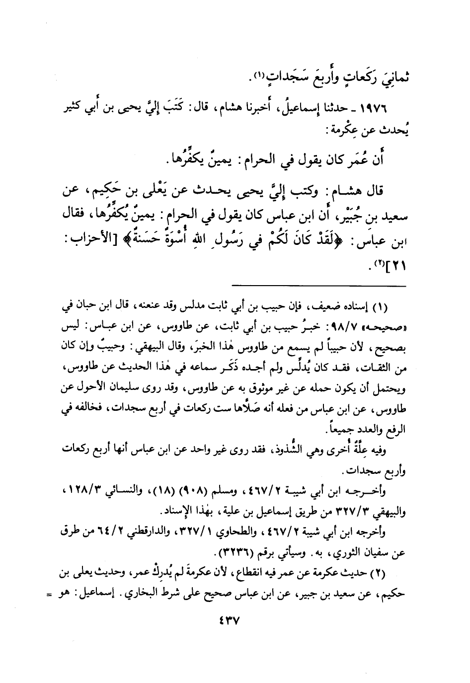 قَالَ هِشَامٌ: وَكَتَبَ إِلَيَّ يَحْيَى، يُحَدِّثُ عَنْ يَعْلَى بْنِ حَكِيمٍ، عَنْ سَعِيدِ بْنِ جُبَيْرٍ، أَنَّ ابْنَ عَبَّاسٍ كَانَ يَقُولُ فِي الْحَرَامِ: " يَمِينٌ يُكَفِّرُهَا "، فَقَالَ ابْنُ عَبَّاسٍ: {لَقَدْ كَانَ لَكُمْ فِي رَسُولِ اللهِ أُسْوَةٌ حَسَنَةٌ} [الأحزاب: ٢١] (٢)