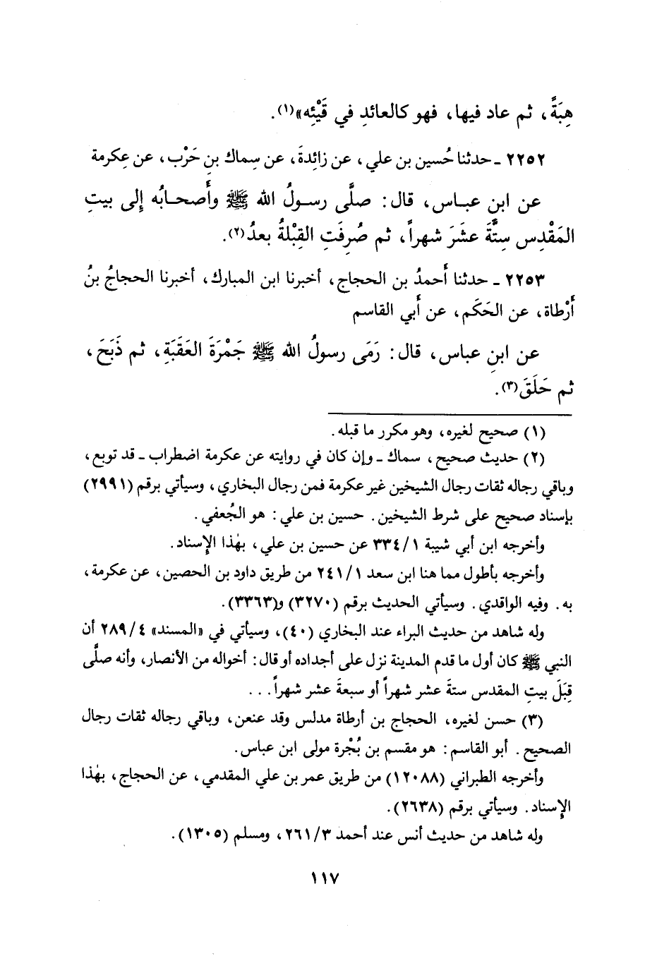 ٢٢٥٢ - حَدَّثَنَا حُسَيْنُ بْنُ عَلِيٍّ، عَنْ زَائِدَةَ، عَنْ سِمَاكِ بْنِ حَرْبٍ، عَنْ عِكْرِمَةَ، عَنِ ابْنِ عَبَّاسٍ، قَالَ: " صَلَّى رَسُولُ اللهِ صَلَّى اللهُ عَلَيْهِ وَسَلَّمَ، وَأَصْحَابُهُ إِلَى بَيْتِ الْمَقْدِسِ سِتَّةَ عَشَرَ شَهْرًا، ثُمَّ صُرِفَتِ الْقِبْلَةُ بَعْدُ " (٢)