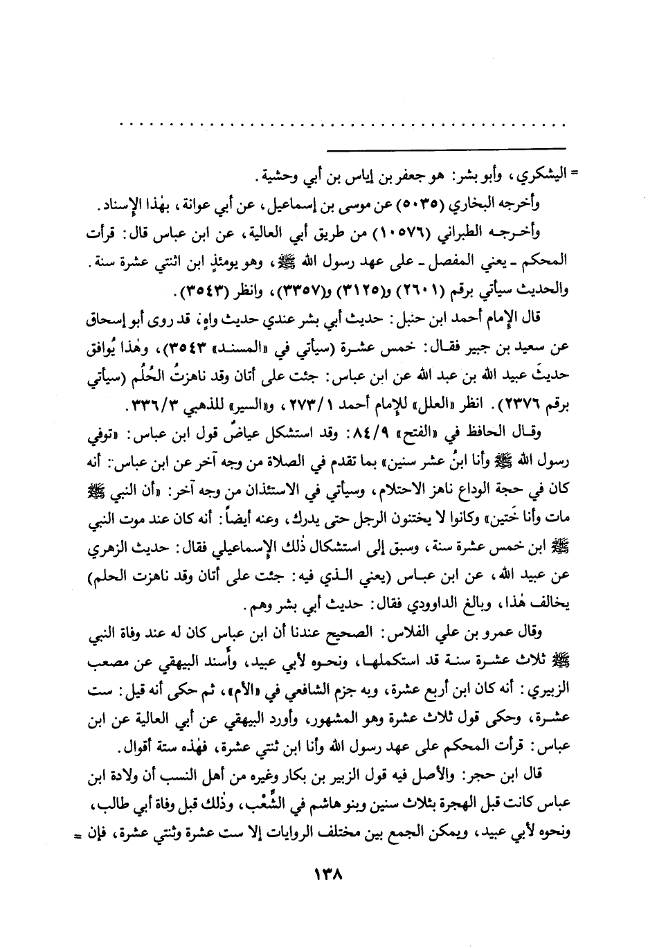 وقال الحافظ في "الفتح" ٩/٨٤: وقد استشكل عياضٌ قول ابن عباس: "توفي رسول الله صَلَّى اللهُ عَلَيْهِ وَسَلَّمَ وأنا ابنُ عشر سنين" بما تقدم في الصلاة من وجه آخر عن ابن عباس: أنه كان في حجة الوداع ناهز الاحتلام، وسيأتي في الاستئذان من وجه آخر: "أن النبي صَلَّى اللهُ عَلَيْهِ وَسَلَّمَ مات وأنا خَتين" وكانوا لا يختنون الرجل حتى يدرك، وعنه أيضاً: أنه كان عند موت النبي صَلَّى اللهُ عَلَيْهِ وَسَلَّمَ ابن خمس عشرة سنة، وسبق إلى استشكال ذلك الإسماعيلي فقال: حديث الزهري عن عبيد الله، عن ابن عباس (يعني الذي فيه: جئت على أتان وقد ناهزت الحلم) يخالف هذا، وبالغ الداوودي فقال: حديث أبي بشر وهم.