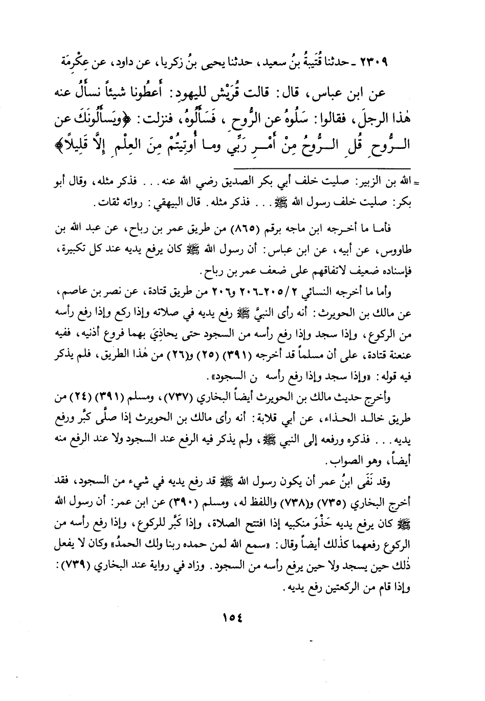 ٢٣٠٩ - حَدَّثَنَا قُتَيْبَةُ بْنُ سَعِيدٍ، حَدَّثَنَا يَحْيَى بْنُ زَكَرِيَّا، عَنْ دَاوُدَ، عَنْ عِكْرِمَةَ، عَنِ ابْنِ عَبَّاسٍ، قَالَ: " قَالَتْ قُرَيْشٌ لِليَهُودِ: أَعْطُونَا شَيْئًا نَسْأَلُ عَنْهُ هَذَا الرَّجُلَ، فَقَالُوا: سَلُوهُ عَنِ الرُّوحِ، فَسَأَلُوهُ، فَنَزَلَتْ: {وَيَسْأَلُونَكَ عَنِ الرُّوحِ قُلِ الرُّوحُ مِنْ أَمْرِ رَبِّي وَمَا أُوتِيتُمْ مِنَ الْعِلْمِ إِلَّا قَلِيلًا}