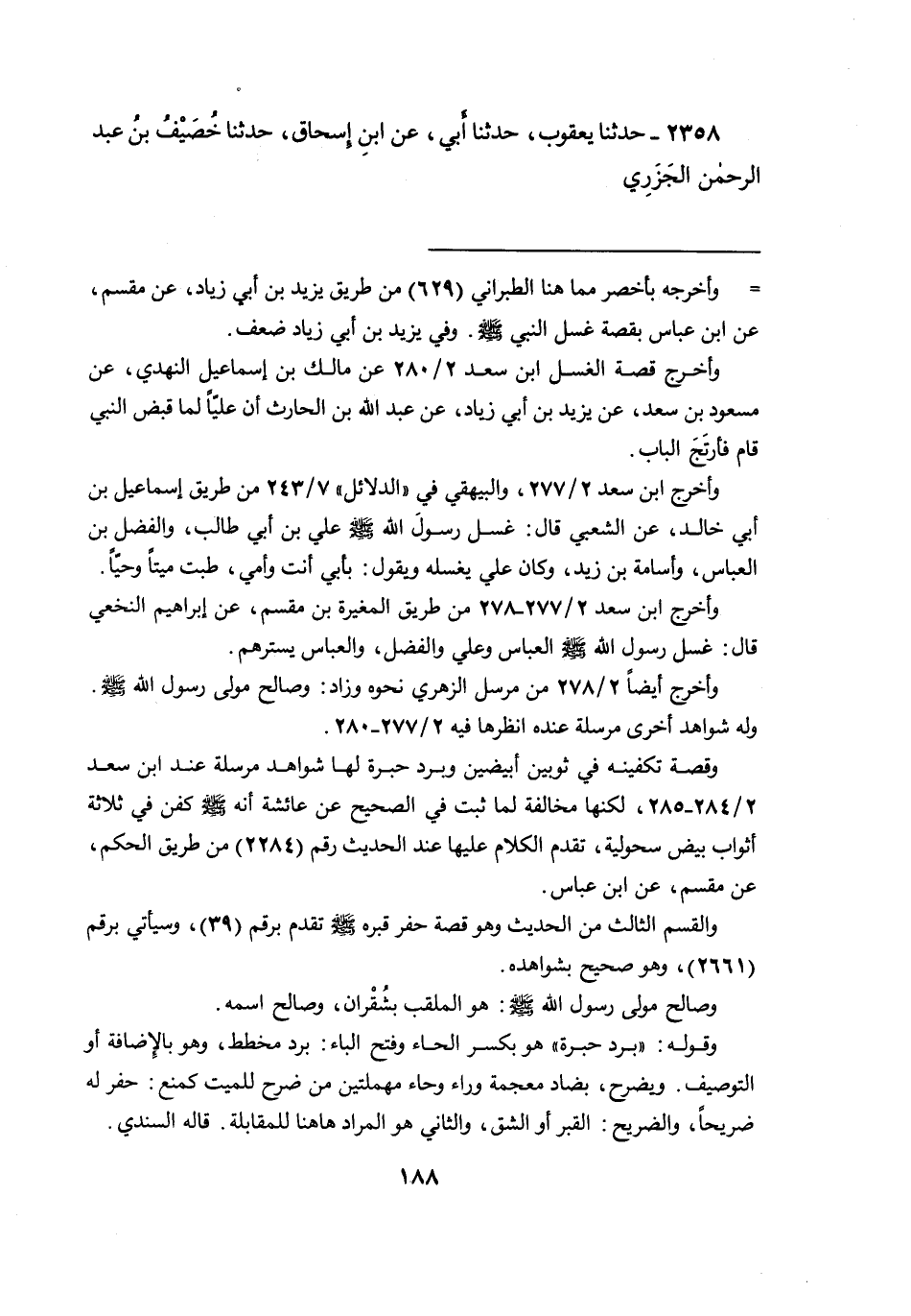 وقصة تكفينه في ثوبين أبيضين وبرد حبرة لها شواهد مرسلة عند ابن سعد ٢/٢٨٤-٢٨٥، لكنها مخالفة لما ثبت في الصحيح عن عائشة أنه صَلَّى اللهُ عَلَيْهِ وَسَلَّمَ كفن في ثلاثة أثواب بيض سحولية، تقدم الكلام عليها عند الحديث رقم (٢٢٨٤) من طريق الحكم، عن مقسم، عن ابن عباس.