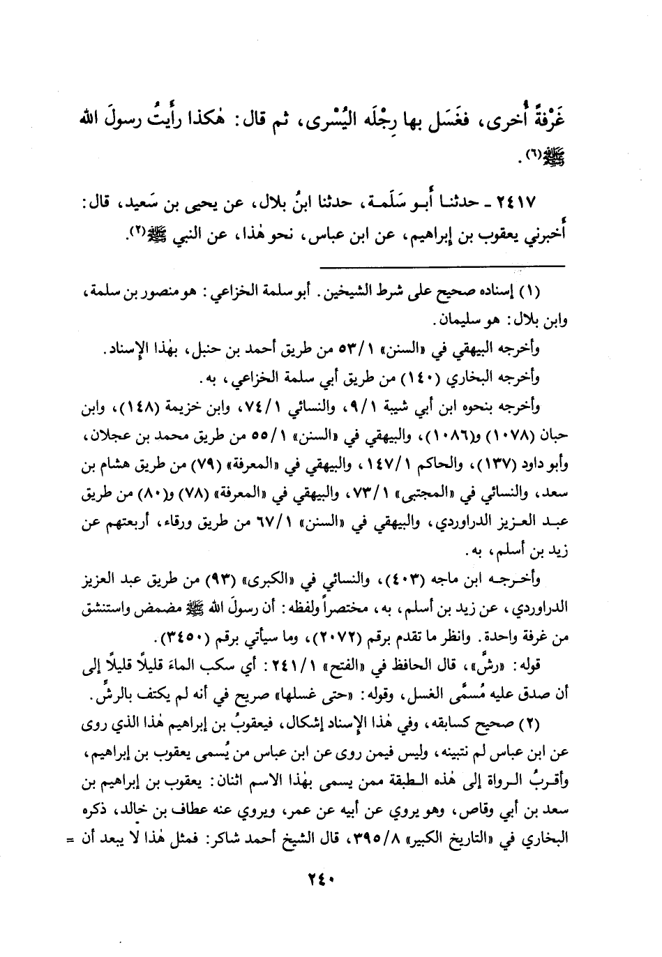 ٢٤١٧ - حَدَّثَنَا أَبُو سَلَمَةَ، حَدَّثَنَا ابْنُ بِلالٍ، عَنْ يَحْيَى بْنِ سَعِيدٍ، قَالَ: أَخْبَرَنِي يَعْقُوبُ بْنُ إِبْرَاهِيمَ، عَنِ ابْنِ عَبَّاسٍ، نَحْوَ هَذَا عَنِ النَّبِيِّ صَلَّى اللهُ عَلَيْهِ وَسَلَّمَ (٢)