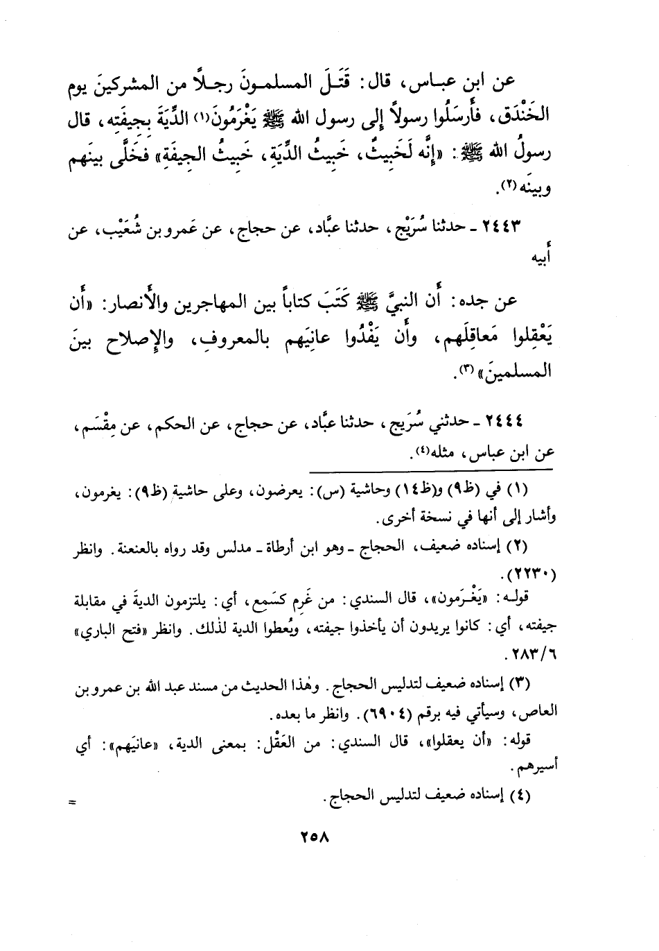 ٢٤٤٤ - حَدَّثَنِي سُرَيْجٌ، حَدَّثَنَا عَبَّادٌ، عَنْ حَجَّاجٍ، عَنِ الْحَكَمِ، عَنْ مِقْسَمٍ، عَنِ ابْنِ عَبَّاسٍ، مِثْلَهُ (٤)