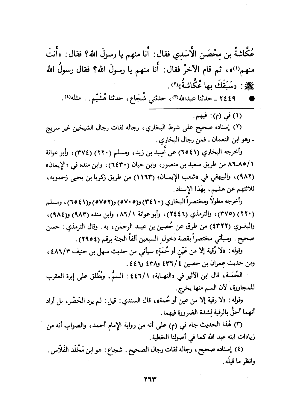• ٢٤٤٩ - حَدَّثَنَا عَبْدُ اللهِ، (٣) حَدَّثَنَا شُجَاعٌ حَدَّثَنَا هُشَيْمٌ، مِثْلَهُ (٤)