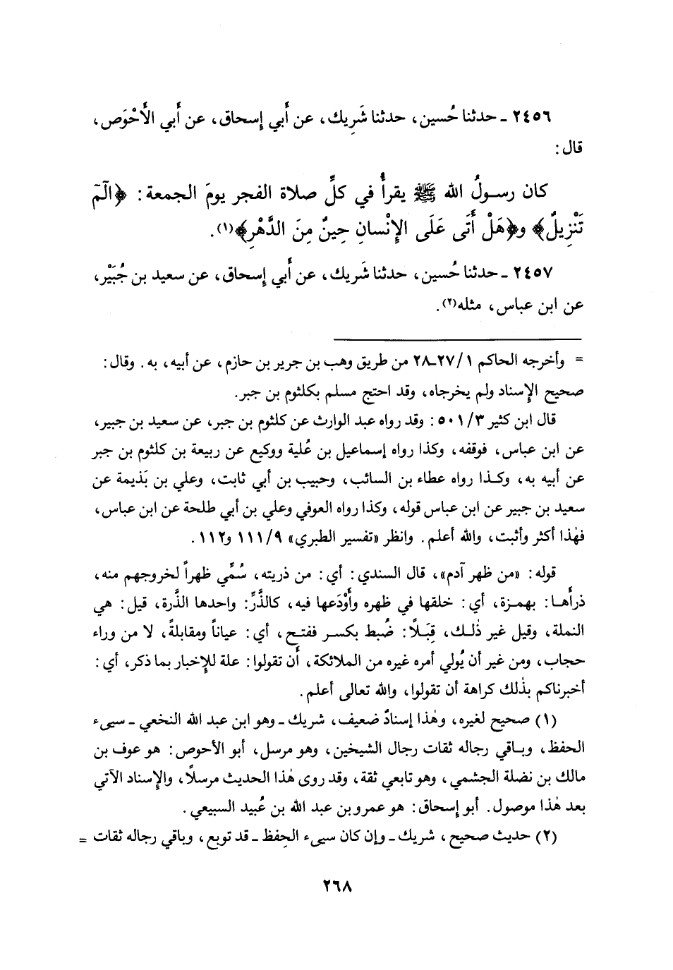 ٢٤٥٧ - حَدَّثَنَا حُسَيْنٌ، حَدَّثَنَا شَرِيكٌ، عَنْ أَبِي إِسْحَاقَ، عَنْ سَعِيدِ بْنِ جُبَيْرٍ، عَنِ ابْنِ عَبَّاسٍ، مِثْلَهُ (٢)