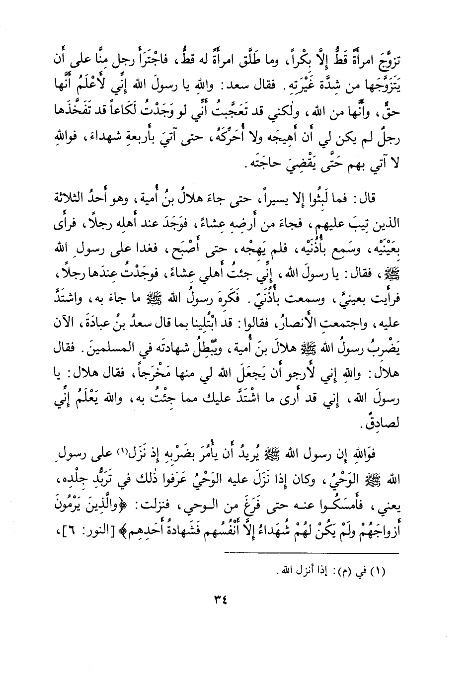 تَزَوَّجَ امْرَأَةً قَطُّ إِلَّا بِكْرًا، وَمَا طَلَّقَ امْرَأَةً لَهُ قَطُّ، فَاجْتَرَأَ رَجُلٌ مِنَّا عَلَى أَنْ يَتَزَوَّجَهَا مِنْ شِدَّةِ غَيْرَتِهِ، فَقَالَ سَعْدٌ: وَاللهِ يَا رَسُولَ اللهِ، إِنِّي لَأَعْلَمُ أَنَّهَا حَقٌّ، وَأَنَّهَا مِنَ اللهِ وَلَكِنِّي قَدْ تَعَجَّبْتُ أَنِّي لَوْ وَجَدْتُ لَكَاعًا قَدْ تَفَخَّذَهَا رَجُلٌ لَمْ يَكُنْ لِي أَنْ أَهِيجَهُ وَلَا أُحَرِّكَهُ، حَتَّى آتِيَ بِأَرْبَعَةِ شُهَدَاءَ، فَوَاللهِ لَا آتِي بِهِمْ حَتَّى يَقْضِيَ حَاجَتَهُ، قَالَ: فَمَا لَبِثُوا إِلَّا يَسِيرًا، حَتَّى جَاءَ هِلَالُ بْنُ أُمَيَّةَ، وَهُوَ أَحَدُ الثَّلَاثَةِ الَّذِينَ تِيبَ عَلَيْهِمْ، فَجَاءَ مِنْ أَرْضِهِ عِشَاءً، فَوَجَدَ عِنْدَ أَهْلِهِ رَجُلًا، فَرَأَى بِعَيْنَيْهِ، وَسَمِعَ بِأُذُنَيْهِ، فَلَمْ يَهِجْهُ، حَتَّى أَصْبَحَ، فَغَدَا عَلَى رَسُولِ اللهِ صَلَّى اللهُ عَلَيْهِ وَسَلَّمَ، فَقَالَ: يَا رَسُولَ اللهِ، إِنِّي جِئْتُ أَهْلِي عِشَاءً، فَوَجَدْتُ عِنْدَهَا رَجُلًا، فَرَأَيْتُ بِعَيْنَيَّ، وَسَمِعْتُ بِأُذُنَيَّ، فَكَرِهَ رَسُولُ اللهِ صَلَّى اللهُ عَلَيْهِ وَسَلَّمَ مَا جَاءَ بِهِ، وَاشْتَدَّ عَلَيْهِ، وَاجْتَمَعَتِ الْأَنْصَارُ، فَقَالُوا: قَدِ ابْتُلِينَا بِمَا قَالَ سَعْدُ بْنُ عُبَادَةَ، الْآنَ يَضْرِبُ رَسُولُ اللهِ صَلَّى اللهُ عَلَيْهِ وَسَلَّمَ هِلَالَ بْنَ أُمَيَّةَ، وَيُبْطِلُ شَهَادَتَهُ فِي الْمُسْلِمِينَ، فَقَالَ هِلَالٌ: وَاللهِ إِنِّي لَأَرْجُو أَنْ يَجْعَلَ اللهُ لِي مِنْهَا مَخْرَجًا، فَقَالَ هِلَالٌ: يَا رَسُولَ اللهِ، إِنِّي قَدْ أَرَى مَا اشْتَدَّ عَلَيْكَ مِمَّا جِئْتُ بِهِ، وَاللهُ يَعْلَمُ إِنِّي لَصَادِقٌ، فَوَاللهِ إِنَّ رَسُولَ اللهِ صَلَّى اللهُ عَلَيْهِ وَسَلَّمَ يُرِيدُ أَنْ يَأْمُرَ بِضَرْبِهِ إِذْ نَزَلَ (١) عَلَى رَسُولِ اللهِ صَلَّى اللهُ عَلَيْهِ وَسَلَّمَ الْوَحْيُ، وَكَانَ إِذَا نَزَلَ عَلَيْهِ الْوَحْيُ عَرَفُوا ذَلِكَ فِي تَرَبُّدِ جِلْدِهِ يَعْنِي، فَأَمْسَكُوا عَنْهُ حَتَّى فَرَغَ مِنَ الوَحْيِ، فَنَزَلَتْ: {وَالَّذِينَ يَرْمُونَ أَزْوَاجَهُمْ وَلَمْ يَكُنْ لَهُمْ شُهَدَاءُ إِلَّا أَنْفُسُهُمْ فَشَهَادَةُ أَحَدِهِمْ} [النور: ٦]