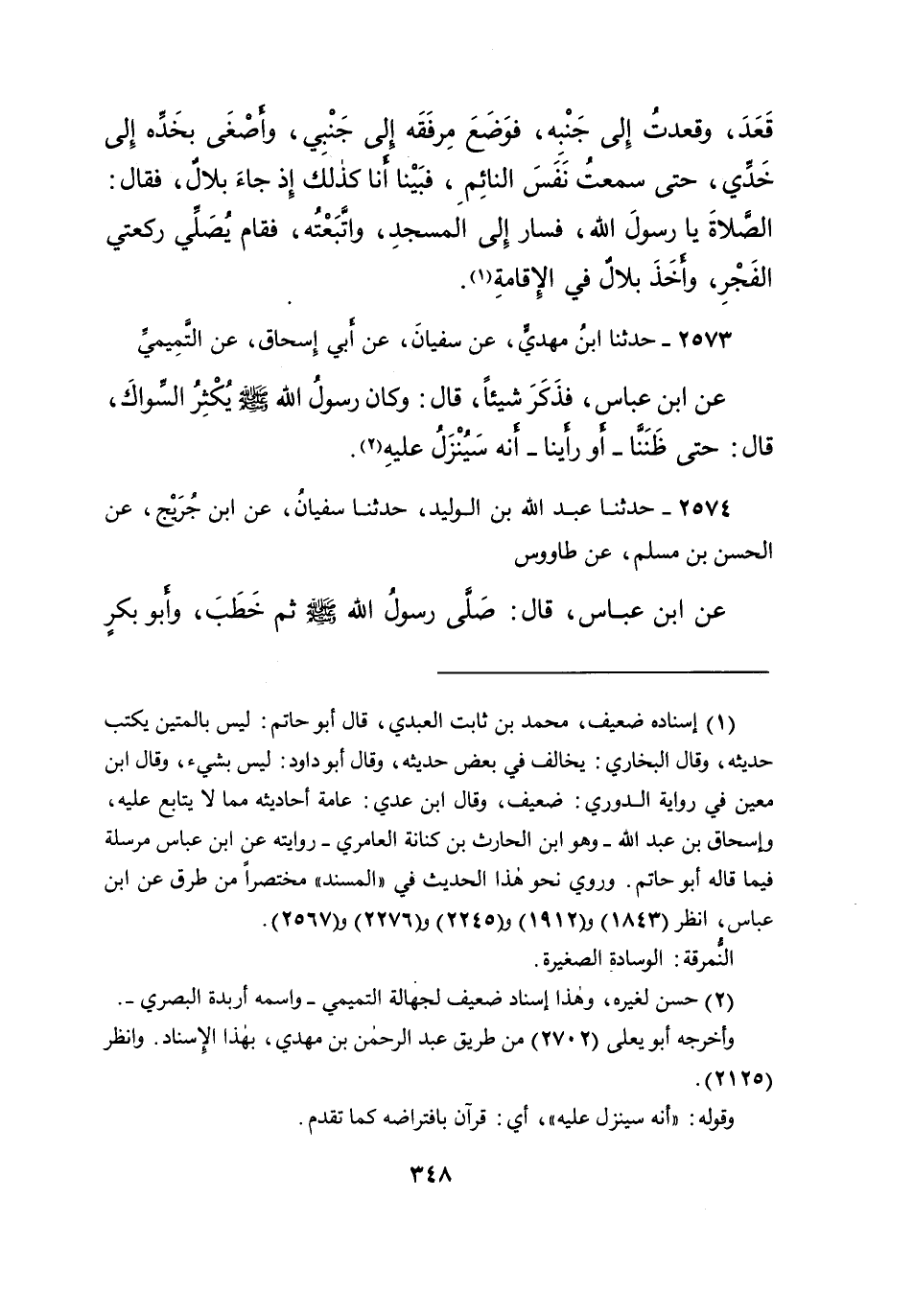 ٢٥٧٣ - حَدَّثَنَا ابْنُ مَهْدِيٍّ، عَنْ سُفْيَانَ، عَنْ أَبِي إِسْحَاقَ، عَنِ التَّمِيمِيِّ، عَنِ ابْنِ عَبَّاسٍ، فَذَكَرَ شَيْئًا قَالَ: " وَكَانَ رَسُولُ اللهِ صَلَّى اللهُ عَلَيْهِ وَسَلَّمَ، يُكْثِرُ السِّوَاكَ " قَالَ: حَتَّى ظَنَنَّا - أَوْ رَأَيْنَا - أَنَّهُ سَيُنْزَلُ عَلَيْهِ (٢)