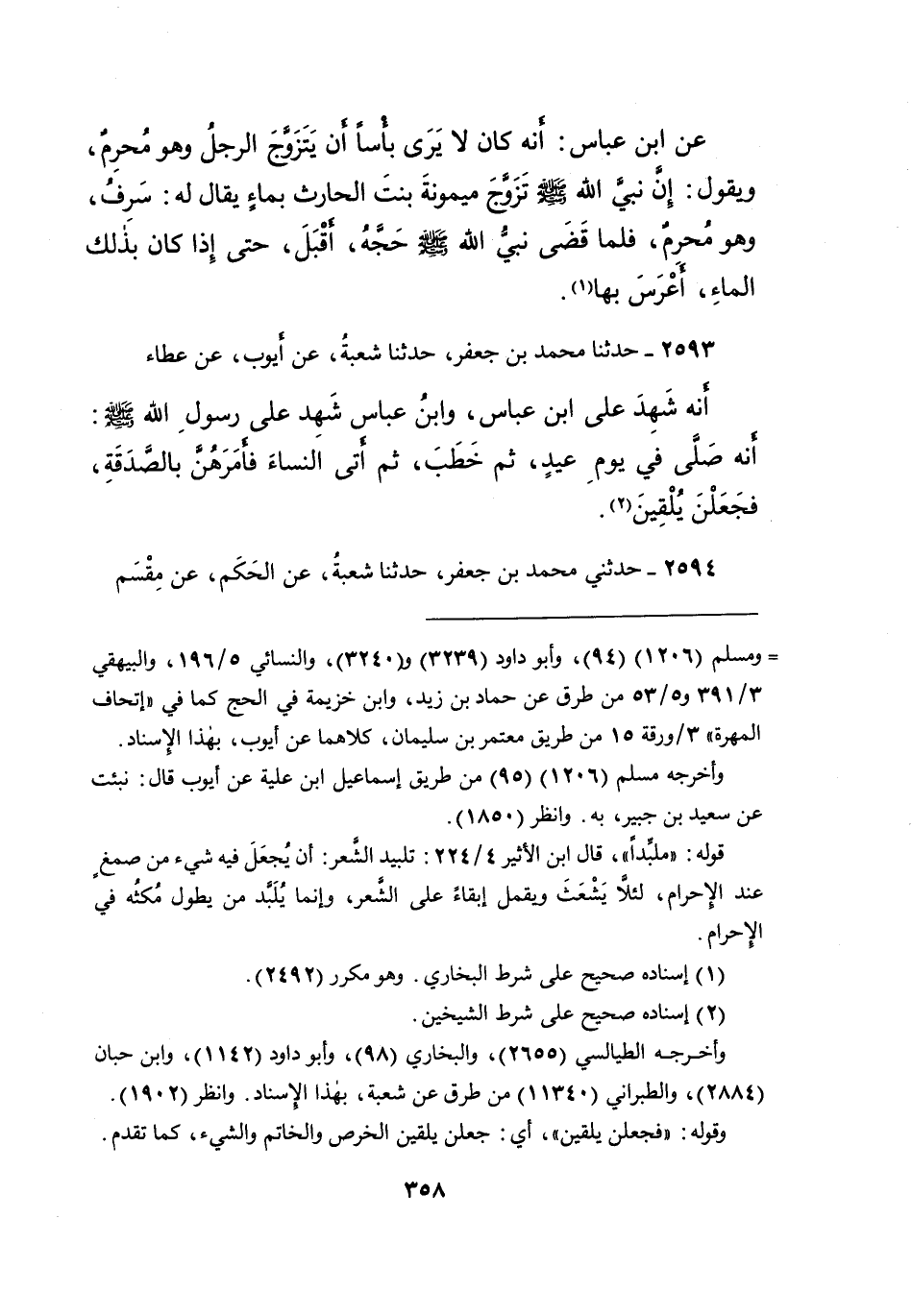 = ومسلم (١٢٠٦) (٩٤) ، وأبو داود (٣٢٣٩) و (٣٢٤٠) ، والنسائي ٥/١٩٦، والبيهقي ٣/٣٩١ و٥/٥٣ من طرق عن حماد بن زيد، وابن خزيمة في الحج كما في "إتحاف المهرة" ٣/ورقة ١٥ من طريق معتمر بن سليمان، كلاهما عن أيوب، بهذا الإسناد.