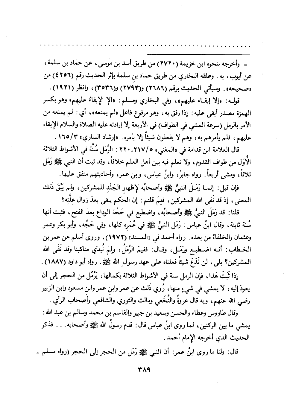 سُنة ثابتة، وقال ابنُ عباس: رَمَل النبي صَلَّى اللهُ عَلَيْهِ وَسَلَّمَ في عُمَرِه كلها، وفي حَجه، وأبو بكر وعمر وعثمان والخلفاءُ من بعده. رواه أحمد في "المسند" (١٩٧٢) ، وروى أسلم عن عمر بن