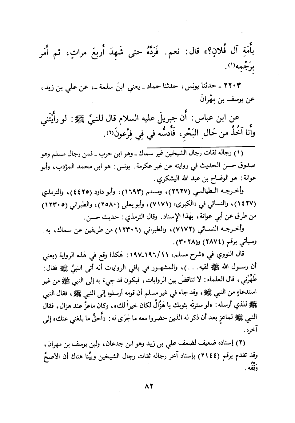 ٢٢٠٣ - حَدَّثَنَا يُونُسُ، حَدَّثَنَا حَمَّادٌ يَعْنِي ابْنَ سَلَمَةَ، عَنْ عَلِىِّ بْنِ زَيْدٍ، عَنْ يُوسُفَ بْنِ مِهْرَانَ، عَنِ ابْنِ عَبَّاسٍ، أَنَّ جِبْرِيلَ عَلَيْهِ السَّلامُ، قَالَ لِلنَّبِيِّ صَلَّى اللهُ عَلَيْهِ وَسَلَّمَ: " لَوْ رَأَيْتَنِي وَأَنَا آخُذُ مِنْ حَالِ الْبَحْرِ، فَأَدُسُّهُ فِي فِي فِرْعَوْنَ " (٢)