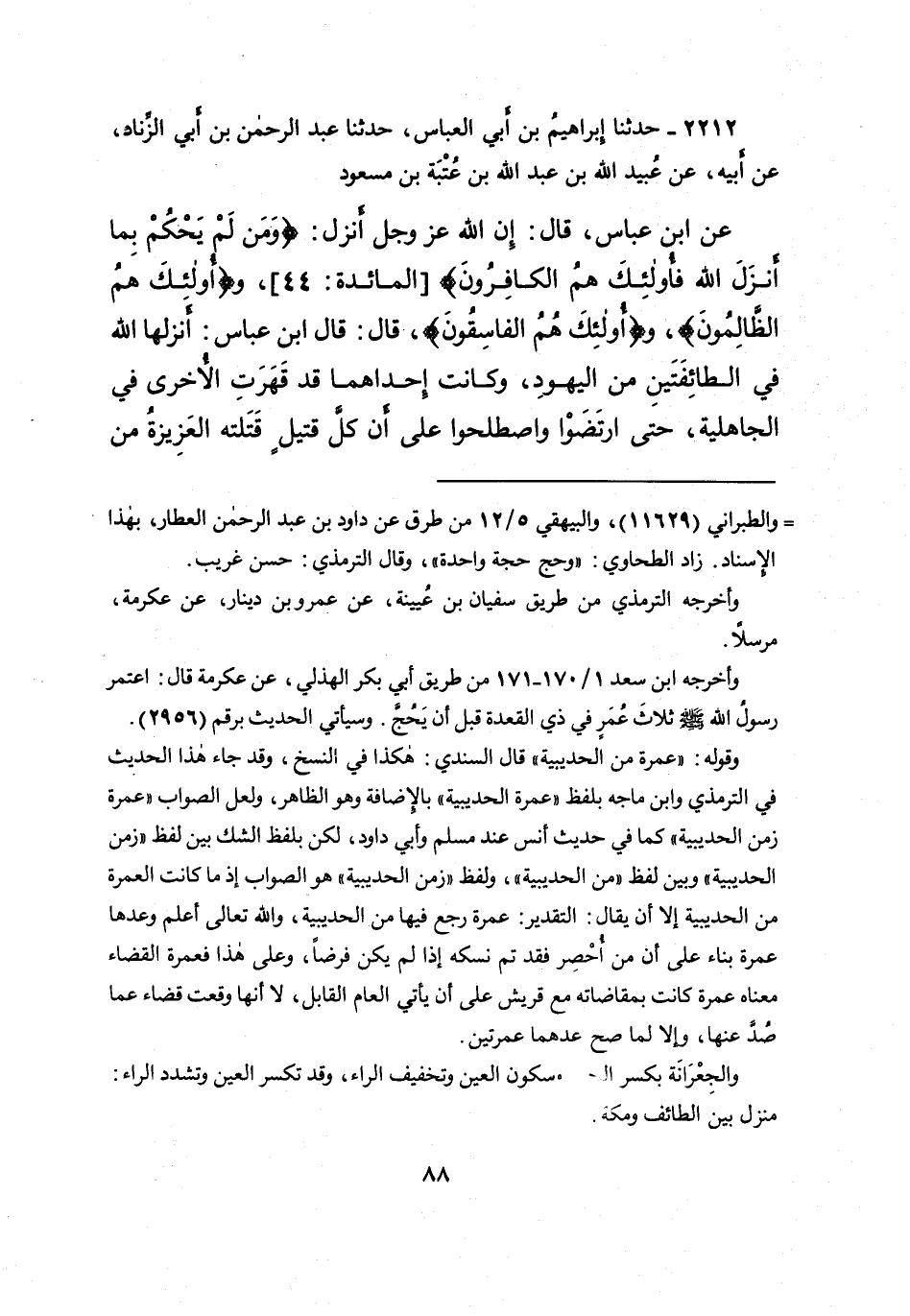٢٢١٢ - حَدَّثَنَا إِبْرَاهِيمُ بْنُ أَبِي الْعَبَّاسِ، حَدَّثَنَا عَبْدُ الرَّحْمَنِ بْنُ أَبِي الزِّنَادِ، عَنْ أَبِيهِ، عَنْ عُبَيْدِ اللهِ بْنِ عَبْدِ اللهِ بْنِ عُتْبَةَ بْنِ مَسْعُودٍ، عَنِ ابْنِ عَبَّاسٍ، قَالَ: إِنَّ اللهَ عَزَّ وَجَلَّ أَنْزَلَ: {وَمَنْ لَمْ يَحْكُمْ بِمَا أَنْزَلَ اللهُ فَأُولَئِكَ هُمِ الْكَافِرُونَ} [المائدة: ٤٤] وَ {أُولَئِكَ هُمِ الظَّالِمُونَ} [النور: ٥٠] وَ {أُولَئِكَ هُمِ الْفَاسِقُونَ} [الحشر: ١٩] ، قَالَ: قَالَ ابْنُ عَبَّاسٍ: " أَنْزَلَهَا اللهُ فِي الطَّائِفَتَيْنِ مِنَ الْيَهُودِ، وَكَانَتْ إِحْدَاهُمَا قَدْ قَهَرَتِ الْأُخْرَى فِي الْجَاهِلِيَّةِ، حَتَّى ارْتَضَوْا وَاصْطَلَحُوا عَلَى أَنَّ كُلَّ قَتِيلٍ قَتَلَتهُ الْعَزِيزَةُ مِنَ