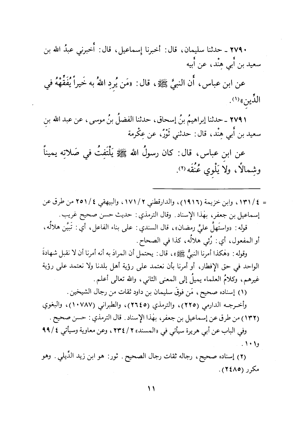 ٢٧٩٠ - حَدَّثَنَا سُلَيْمَانُ، قَالَ: أَخْبَرَنَا إِسْمَاعِيلُ، قَالَ: أَخْبَرَنِي عَبْدُ اللهِ بْنُ سَعِيدِ بْنِ أَبِي هِنْدٍ، عَنْ أَبِيهِ، عَنِ ابْنِ عَبَّاسٍ، أَنَّ النَّبِيَّ صَلَّى اللهُ عَلَيْهِ وَسَلَّمَ قَالَ: " مَنْ يُرِدِ اللهُ بِهِ خَيْرًا يُفَقِّهُّ فِي الدِّينِ " (١)