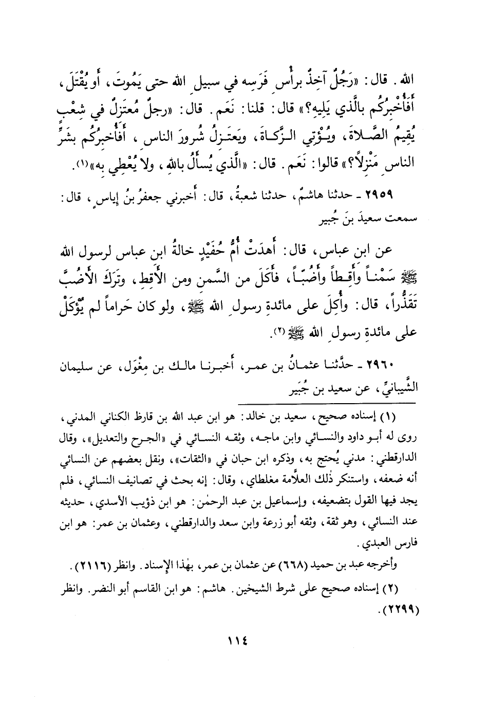 ٢٩٦٠ - حَدَّثَنَا عُثْمَانُ بْنُ عُمَرَ، أَخْبَرَنَا مَالِكُ بْنُ مِغْوَلٍ، عَنْ سُلَيْمَانَ الشَّيْبَانِيِّ، عَنْ سَعِيدِ بْنِ جُبَيْرٍ،