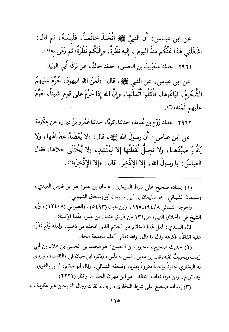 ٢٩٦١ - حَدَّثَنَا مَحْبُوبُ بْنُ الْحَسَنِ، حَدَّثَنَا خَالِدٌ، عَنْ بَرَكَةَ أَبِي الْوَلِيدِ، عَنِ ابْنِ عَبَّاسٍ، أَنَّ النَّبِيَّ صَلَّى اللهُ عَلَيْهِ وَسَلَّمَ قَالَ: " لَعَنَ اللهُ الْيَهُودَ، حُرِّمَ عَلَيْهِمِ الشُّحُومُ، فَبَاعُوهَا، فَأَكَلُوا أَثْمَانَهَا، وَإِنَّ اللهَ إِذَا حَرَّمَ عَلَى قَوْمٍ شَيْئًا، حَرَّمَ عَلَيْهِمْ ثَمَنَهُ " (٢)