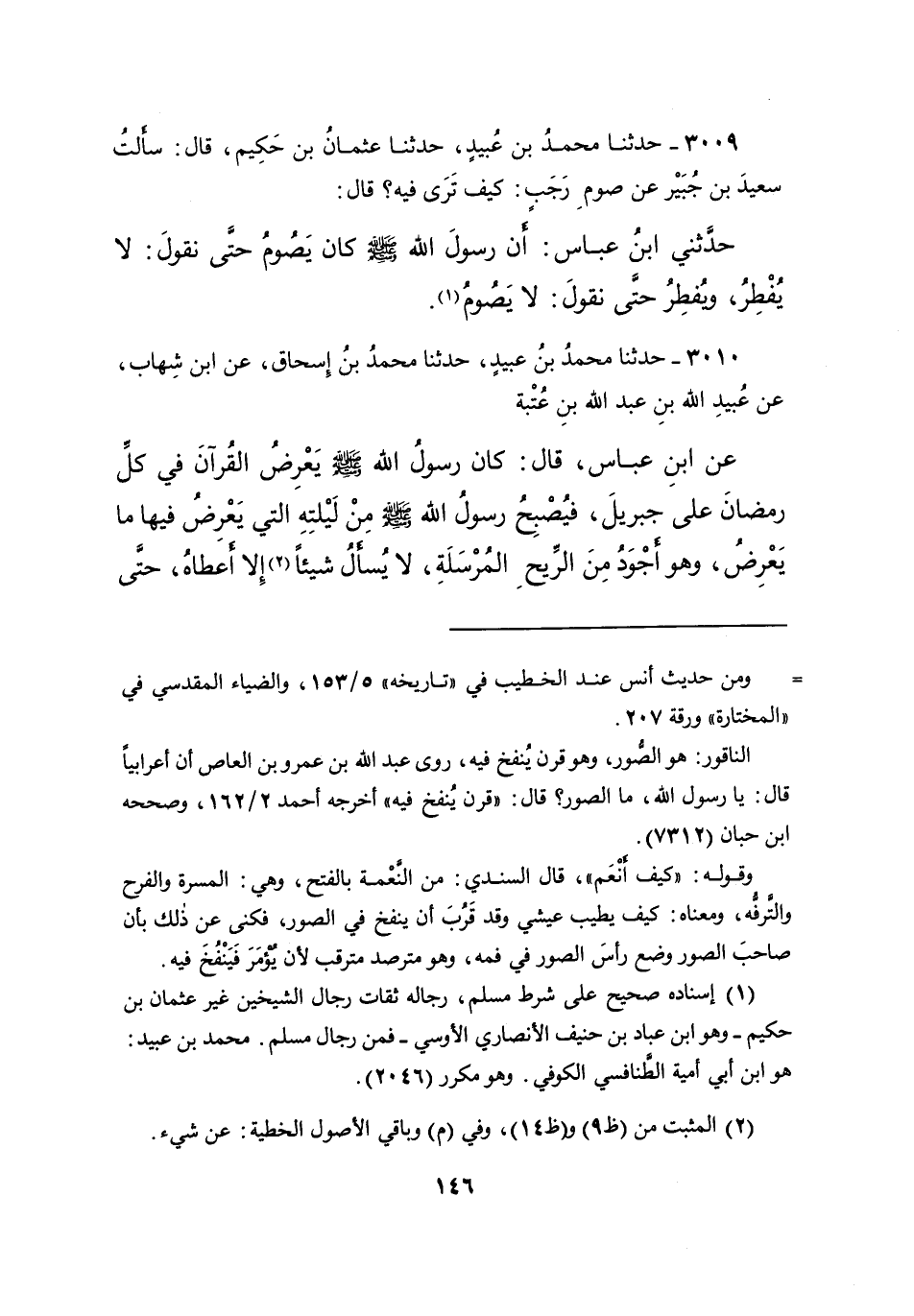 ٣٠٠٩ - حَدَّثَنَا مُحَمَّدُ بْنُ عُبَيْدٍ، حَدَّثَنَا عُثْمَانُ بْنُ حَكِيمٍ، قَالَ: سَأَلْتُ سَعِيدَ بْنَ جُبَيْرٍ، عَنْ صَوْمِ رَجَبٍ: كَيْفَ تَرَى فِيهِ؟ قَالَ: حَدَّثَنِي ابْنُ عَبَّاسٍ: أَنَّ رَسُولَ اللهِ صَلَّى اللهُ عَلَيْهِ وَسَلَّمَ " كَانَ يَصُومُ حَتَّى نَقُولَ: لَا يُفْطِرُ، وَيُفْطِرُ حَتَّى نَقُولَ: لَا يَصُومُ " (١)
