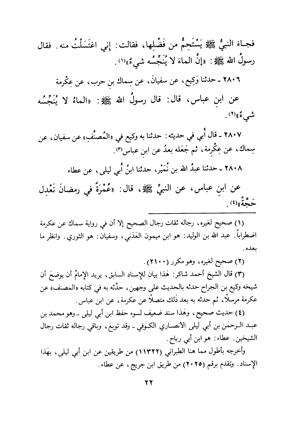 (٣) قال الشيخ أحمد شاكر: هذا بيان للإسناد السابق، يريد الإمامُ أن بوضحَ أن شيخه وكيع بن الجراح حدثه بالحديث على وجهين، حدثه به في كتابه "المصنف" عن عكرمة مرسلاً، ثم حدثه به بعد ذلك متصلا عن عكرمة، عن ابن عباس.